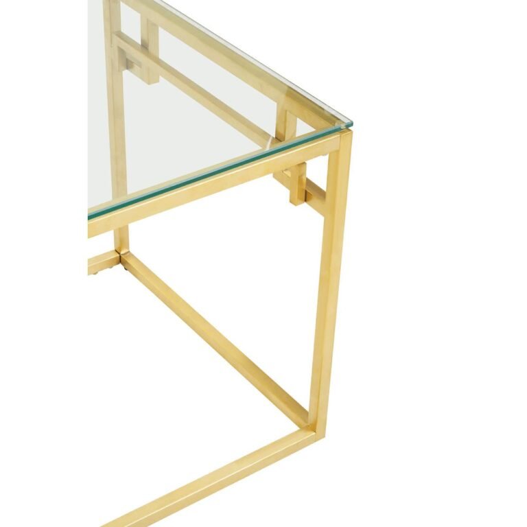 This chic side table is framed in a sturdy brushed gold stainless steel frame with a minimal design on the sides for a touch of glamour, tempered glass top provides ample space. The frame is designed to withstand different conditions matching all modern aesthetics.