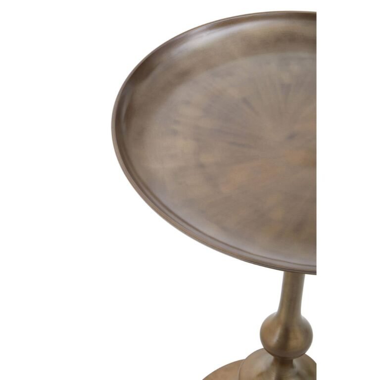 The Aliet antique brass aluminium small side table has a simple design while still catching the eye.