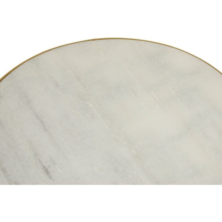 Ambia 2 Shelves Side Table: This side table features smooth white marble tops which are adjusted at different heights forming two tier levels. The table has the brass powdered coated base with a round bottom which coordinates with its circular shelves. Stylish and functional, this table will look elegant with its warm metallic accent and luxurious visual appeal.