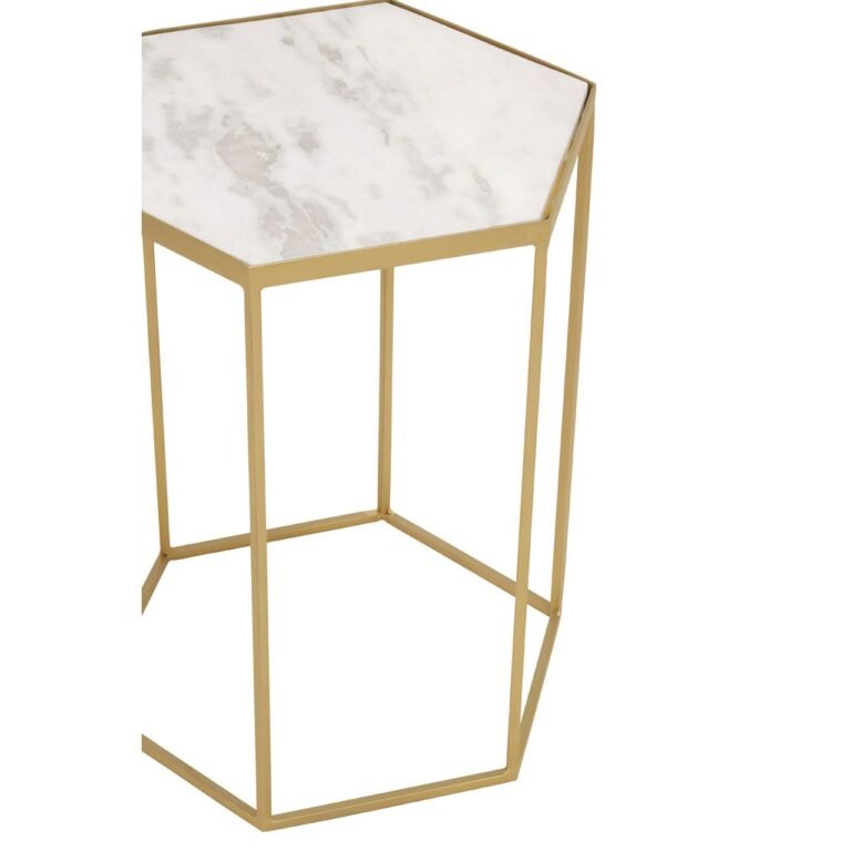 Bring a touch of gentle sophistication to the living room with this Ambia Hexagonal Side Table featuring clean lines and hexagonal base in rich gold accent. A chic white marble sits atop the luxe frame and enhances contemporary glamour.