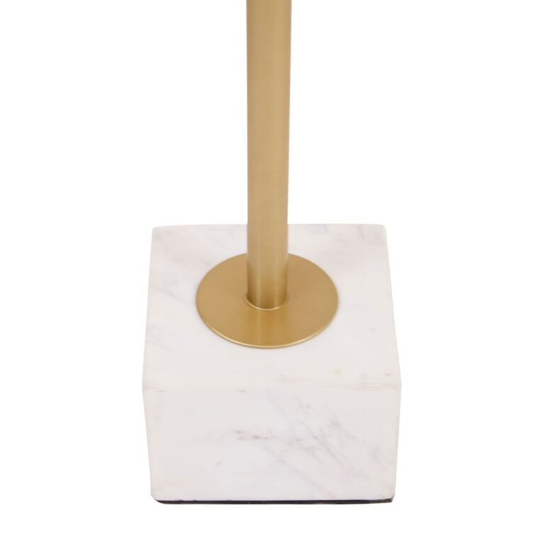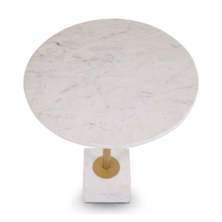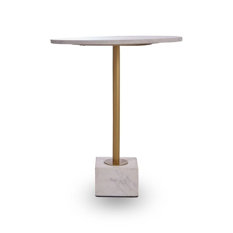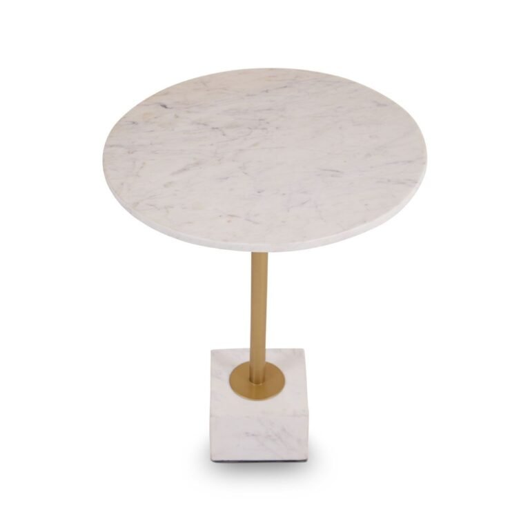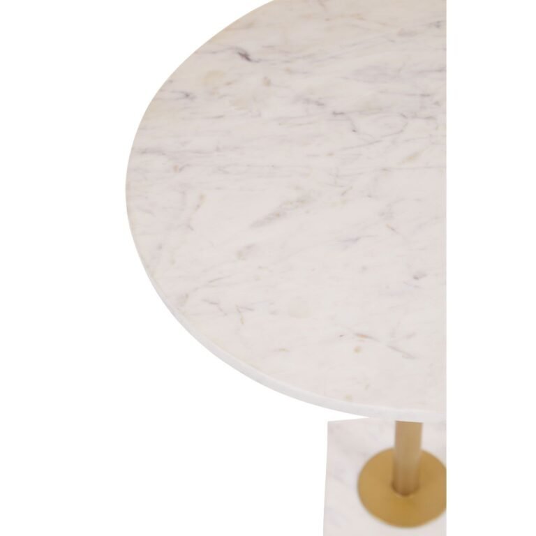This Ambia Side Table With T Shaped Base will stand out with a glamorous combination of the chic white marble top and T-shaped base in brass finish. The simple shapes are enhanced with luxe tones to makes a dramatic statement.