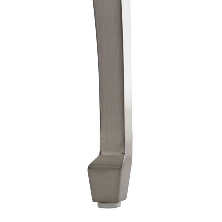 Black Oie Tempered Glass End Table: Giving the traditional end table a contemporary twist, the chic black glass top contrasts with the contours of the elegant nickel plated legs for a stylish and practical table that will enhance your room. The robust black tempered glass is smooth and sleek making it perfect for placing plants, lamps, photos, flowers and other decorative ornaments on. The metal legs are finished with nickel plating for a sheen look that complements the black glass. The sturdy legs have a beautiful bow curve that accentuates the style of the table. A functional and fashionable way to create extra surface space, the elegant end table will complement most decors.