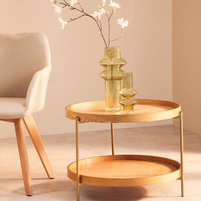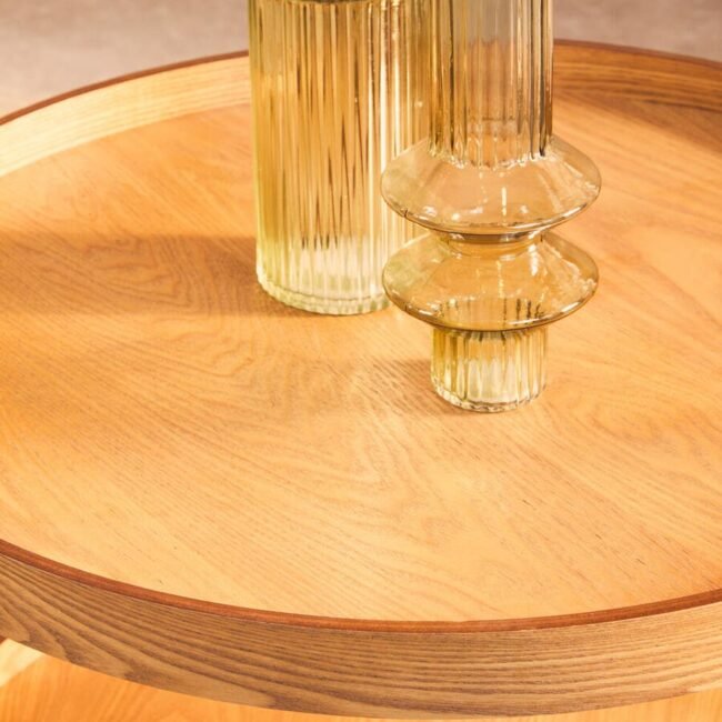 Borgolt Two Tier Side Table exudes elegance with a natural wood veneer.