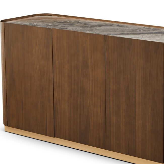The Brooklyn Sideboard comes in a dark walnut veneer with a ceramic top, and painted gold base. The Brooklyn Sideboard can you help achieve the perfect finish in any home or interior design project
