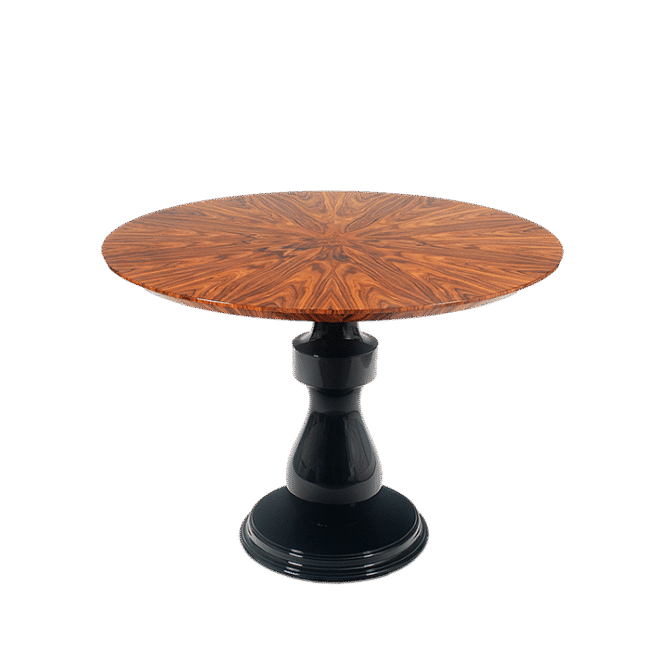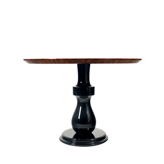 Colombos is the perfect pedestal table for a living room, hallway, entrance or lobby. This very stylish pedestal table is a perfect table to display a beloved collectible, books or perhaps a vase with flowers. Colombos is so functional that can also be a coffee or a tea table! A single center column, with a pedestal base in a simple and delicate silhouette, that brings a new look to a very classic shape. The tabletop is available in either rosewood or palisander. The single center column is available in either beech, mahogany or walnut lacquer finished in black or white.
