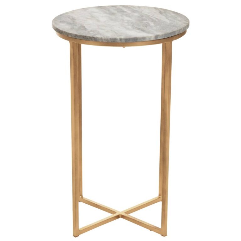 This table combines a marble top with natural shade which is beautifully supported by a gold powder coated iron base comprised of four legs and an X shaped stretcher. Meanwhile, its compact construction allows it to fit perfectly.