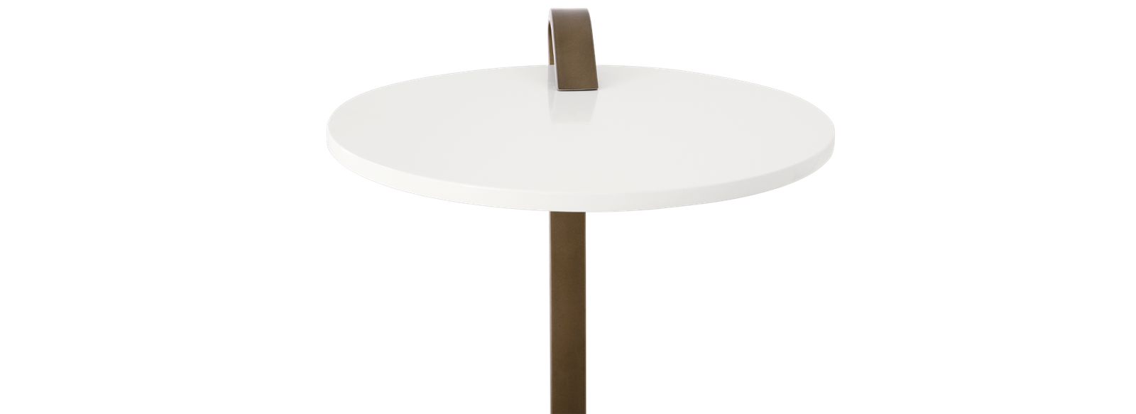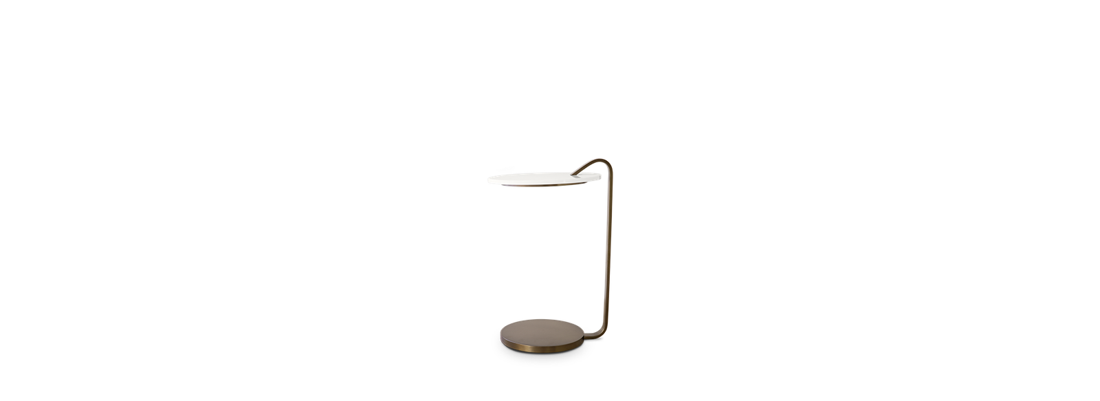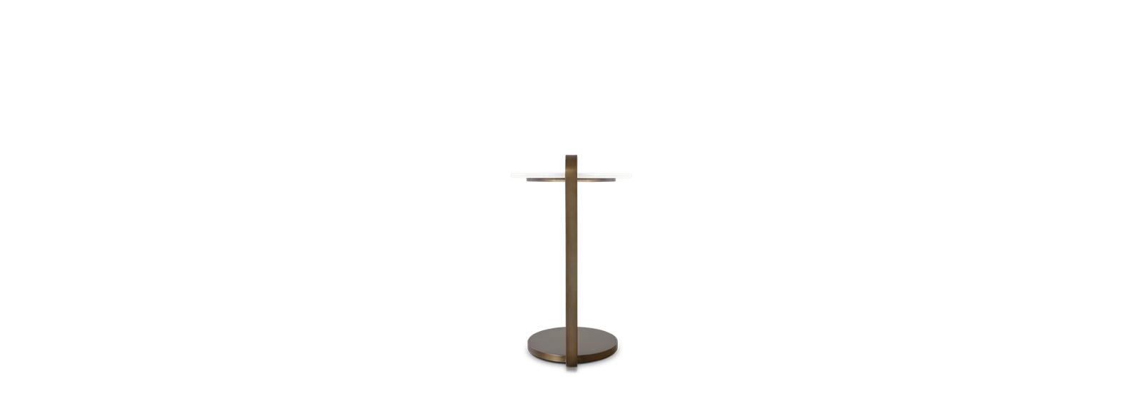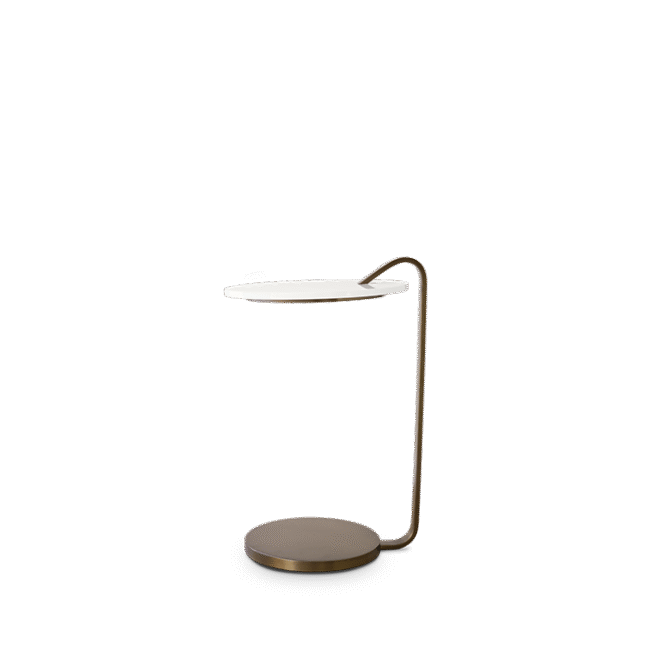 Cutty Side Table: A term describing a short and stubby spoon, which by definition characterizes this side table perfectly. A highly modern piece, with a sophisticated dark bronze leg and a glossy cream lacquered top. Subtle, sleek, and practical, the essential item for any room or complement other furniture pieces.