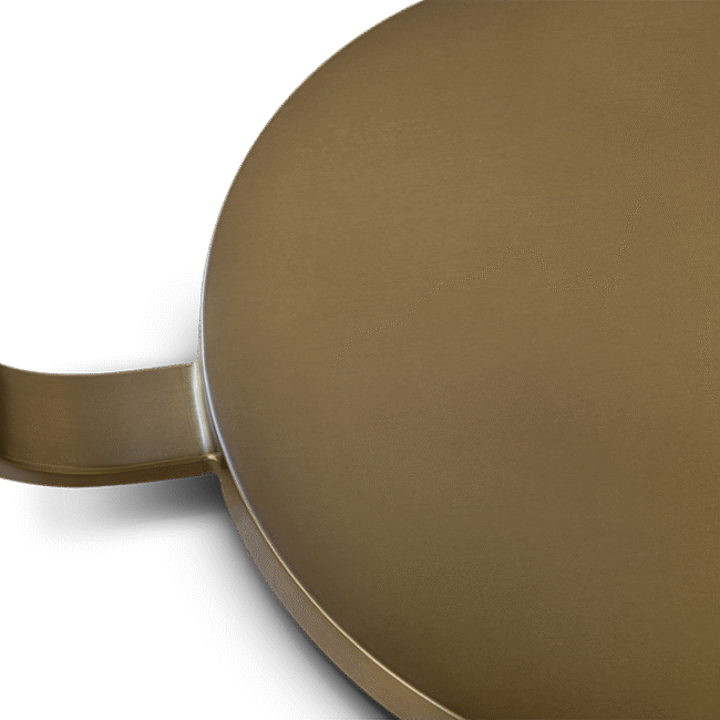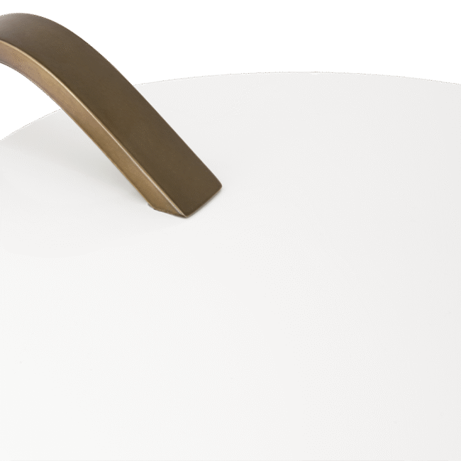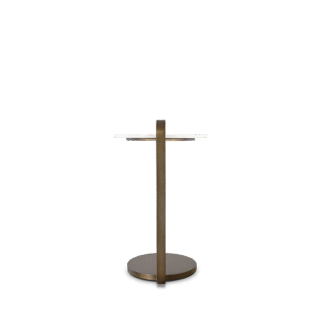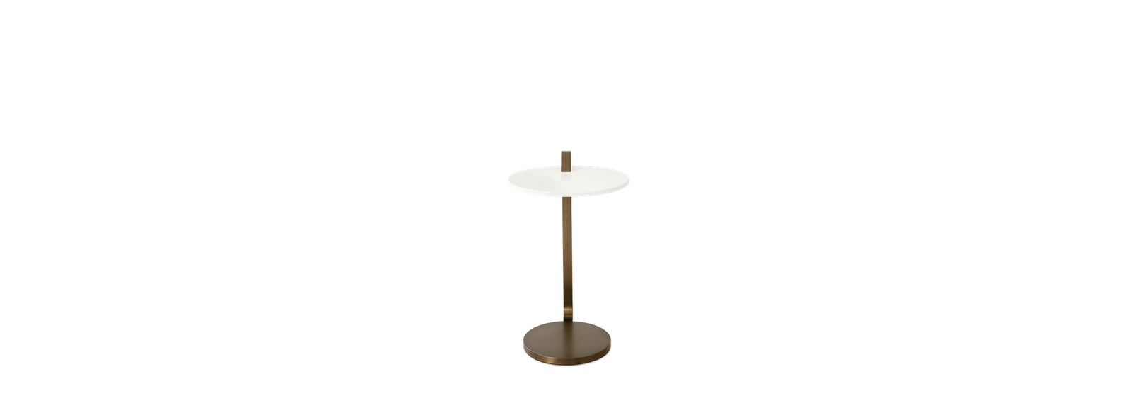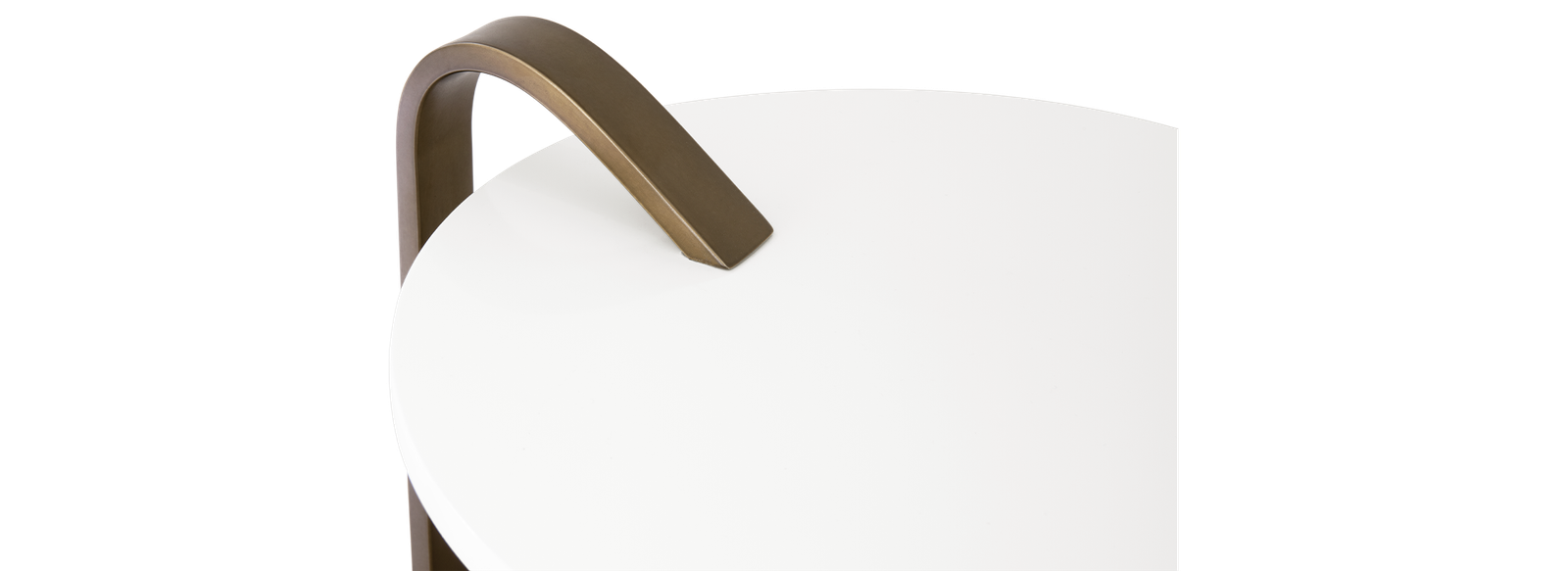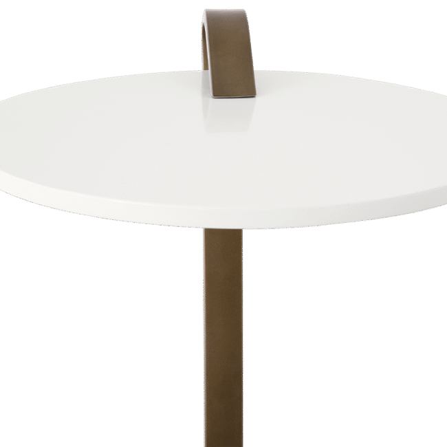 Cutty Side Table: A term describing a short and stubby spoon, which by definition characterizes this side table perfectly. A highly modern piece, with a sophisticated dark bronze leg and a glossy cream lacquered top. Subtle, sleek, and practical, the essential item for any room or complement other furniture pieces.
