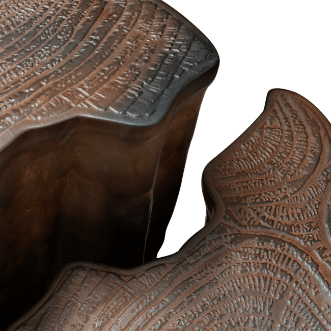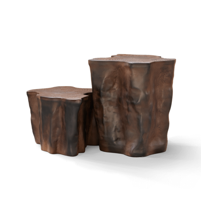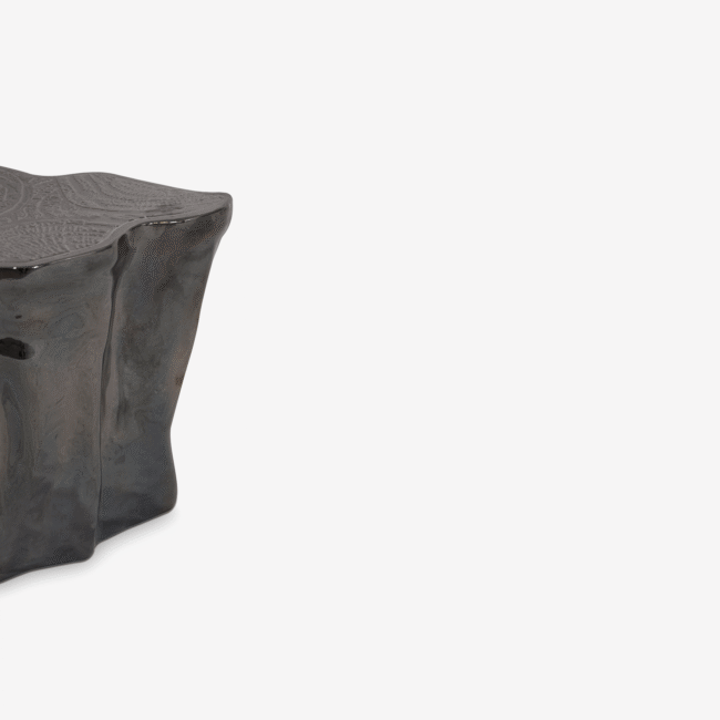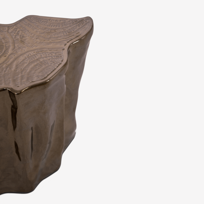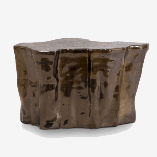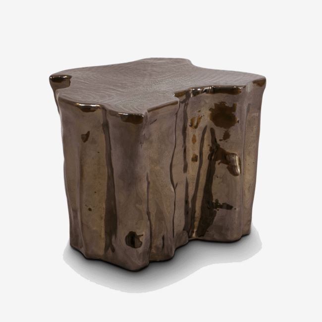 Eden Ceramic Side Table: Boca do Lobo uses the highest quality materials and textures, giving them shapes through objects that create a cosmopolitan luxury environment, finding the finest example in this table. Eden is inspired by the mystic behind the name. This side table represents a part of the tree of knowledge and the tale of the birth of desire. Fully made of polished casted brass, with a delicately engraved top exposing the heart of a golden tree to the very heart of a home. Available a set of two side tables and also an elegant and highly decorative side table.