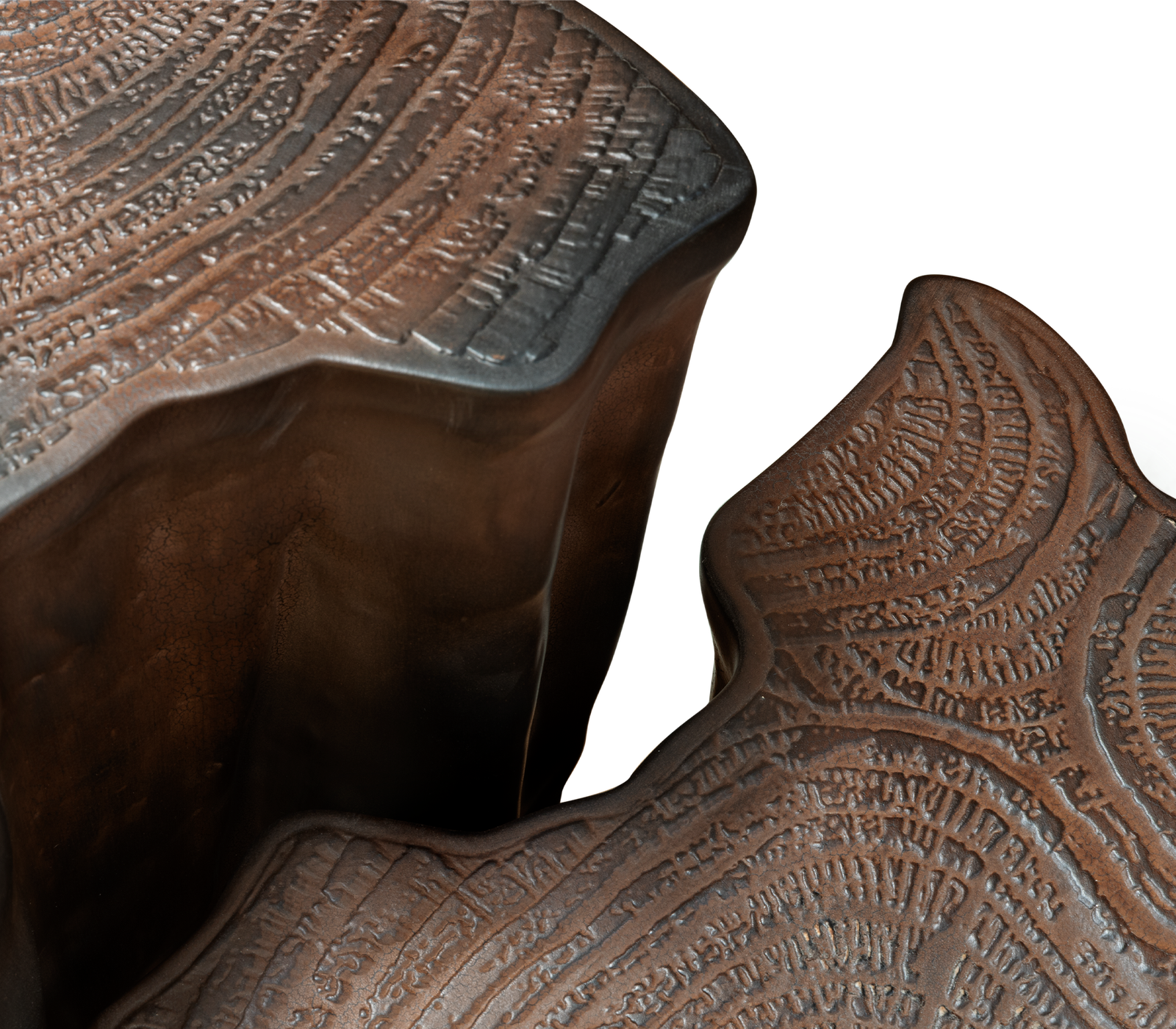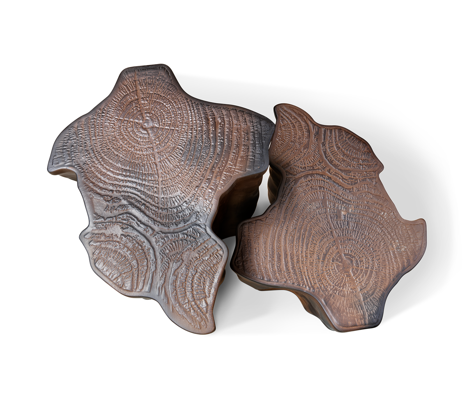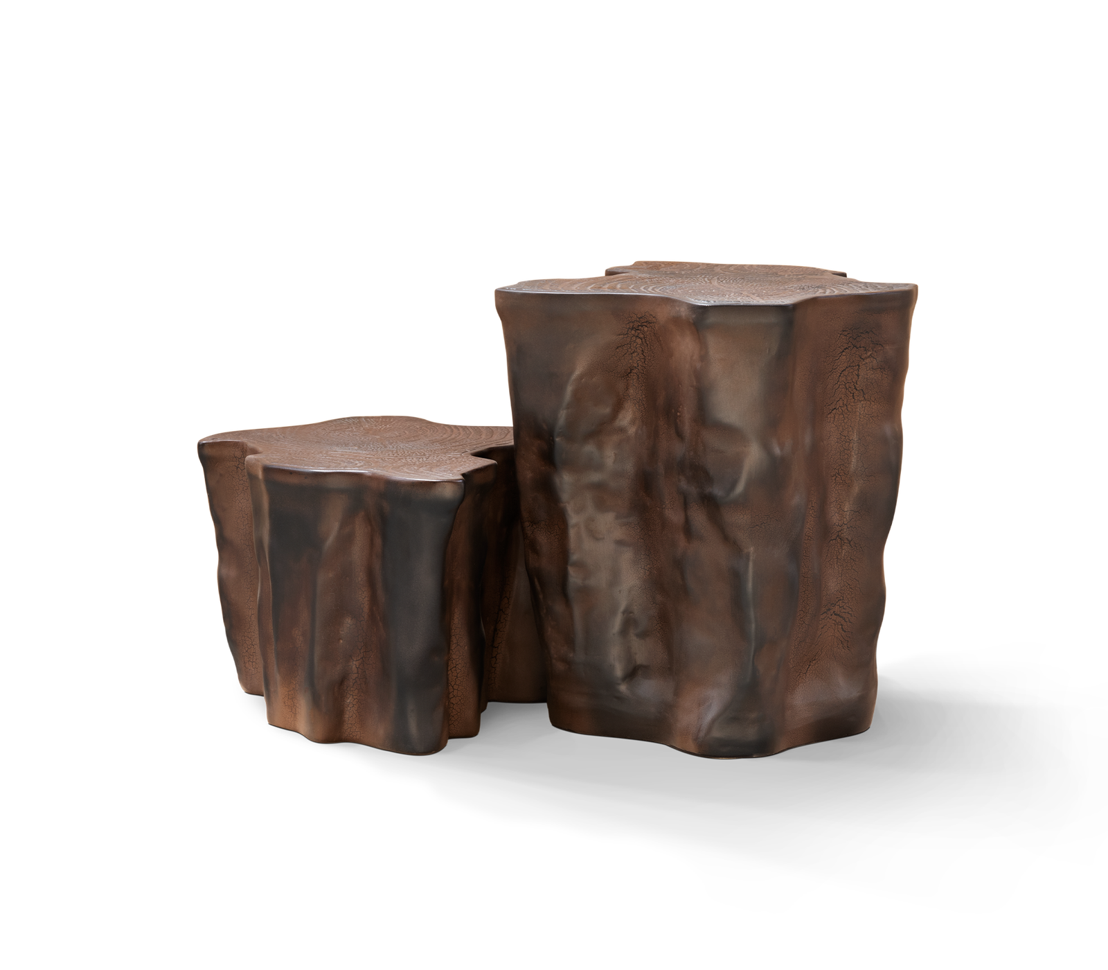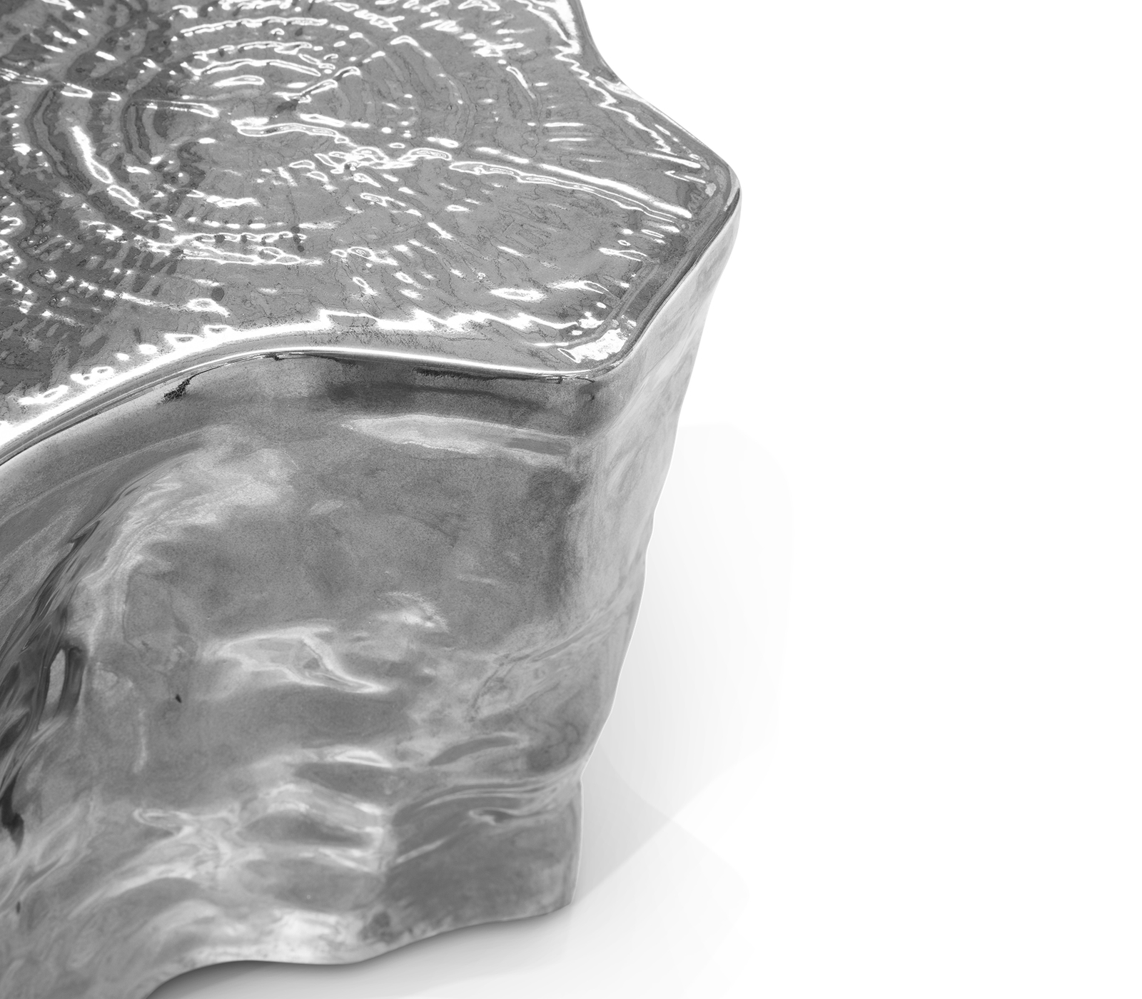 Eden Ceramic Side Table: Boca do Lobo uses the highest quality materials and textures, giving them shapes through objects that create a cosmopolitan luxury environment, finding the finest example in this table. Eden is inspired by the mystic behind the name. This side table represents a part of the tree of knowledge and the tale of the birth of desire. Fully made of polished casted brass, with a delicately engraved top exposing the heart of a golden tree to the very heart of a home. Available a set of two side tables and also an elegant and highly decorative side table.