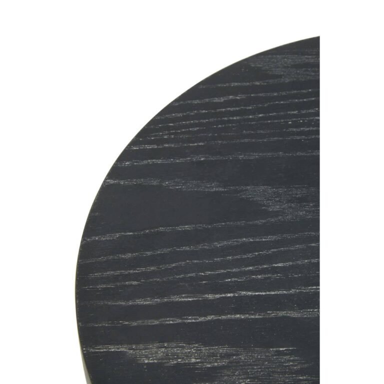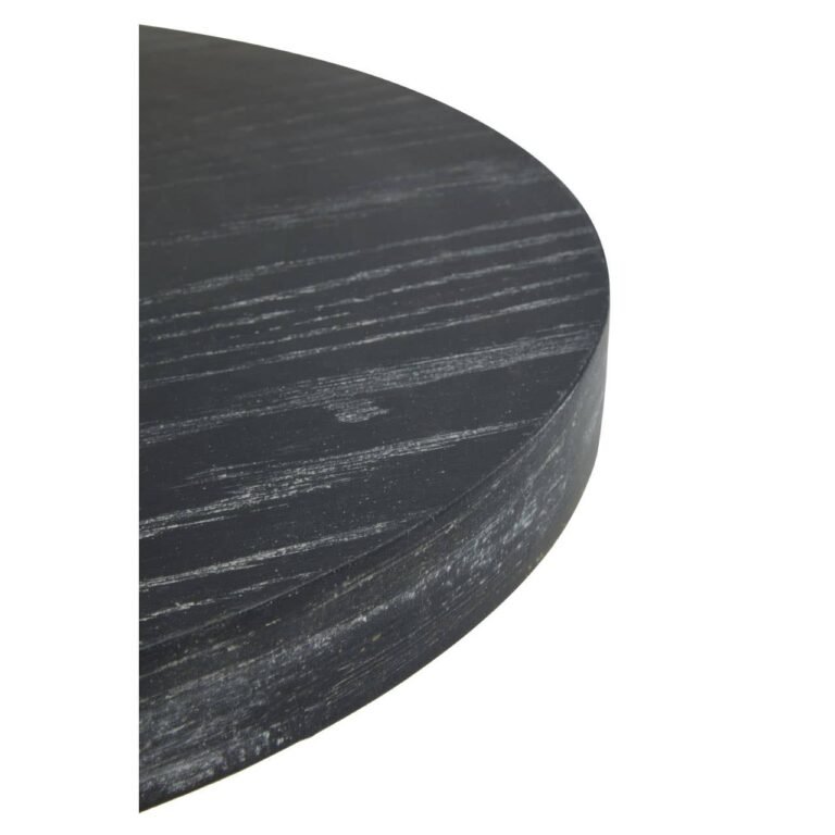 Enswood Side Table: This side table goes well with subtly-industrial spaces. The oak veneered top in sandblasted black and grey finish features a round shape, creating a rustic charm. The stainless steel base in the gold finish provides added support with style.