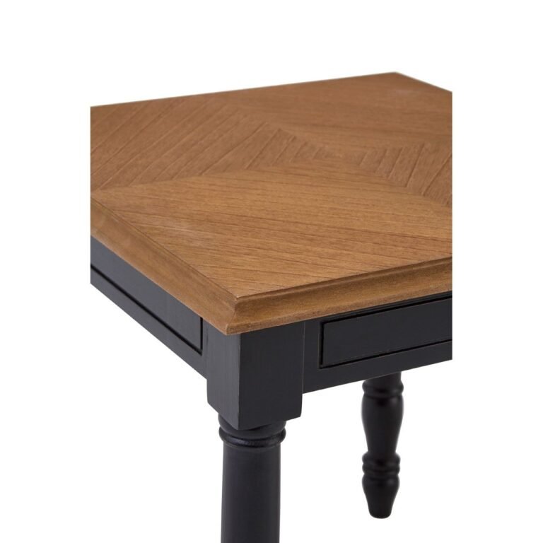 Huxley Black Side Table: This side table features a natural and black colour palette. The tabletop promotes a prominent natural grain and cut edges, while the legs appeal thanks to the carved detail and pointed feet. The table is made from textured bayur wood, and can be coordinated with the Huxley black and natural coffee table.