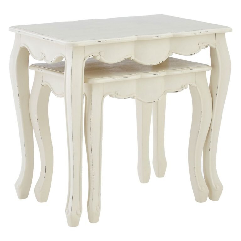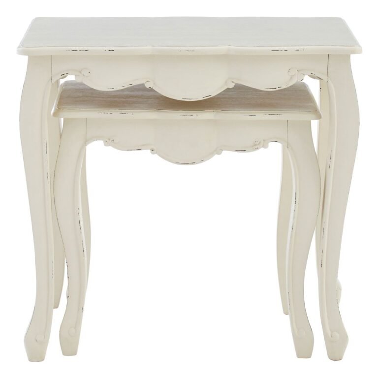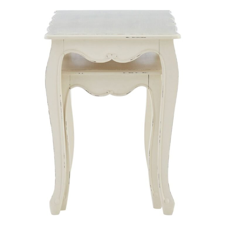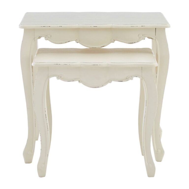 Huxley Set Of 2 White Side Tables: A set of two, the smaller Huxley side table fits comfortably underneath the larger for easy and efficient storage. The duo are made from renewable bayur wood with a smooth white painted finish. Subtle distressing around the edges lends rustic appeal to the tables, making them suitable for styling in boho inspired interiors.