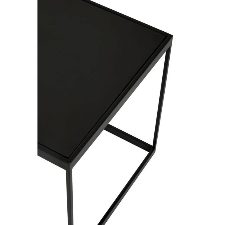 This cube end table has a simple design with a matte black powder coated iron frame that lends it an open and airy aesthetic. A slab of white and black line marble in mild veining sits atop the simple frame character to the otherwise understated design.