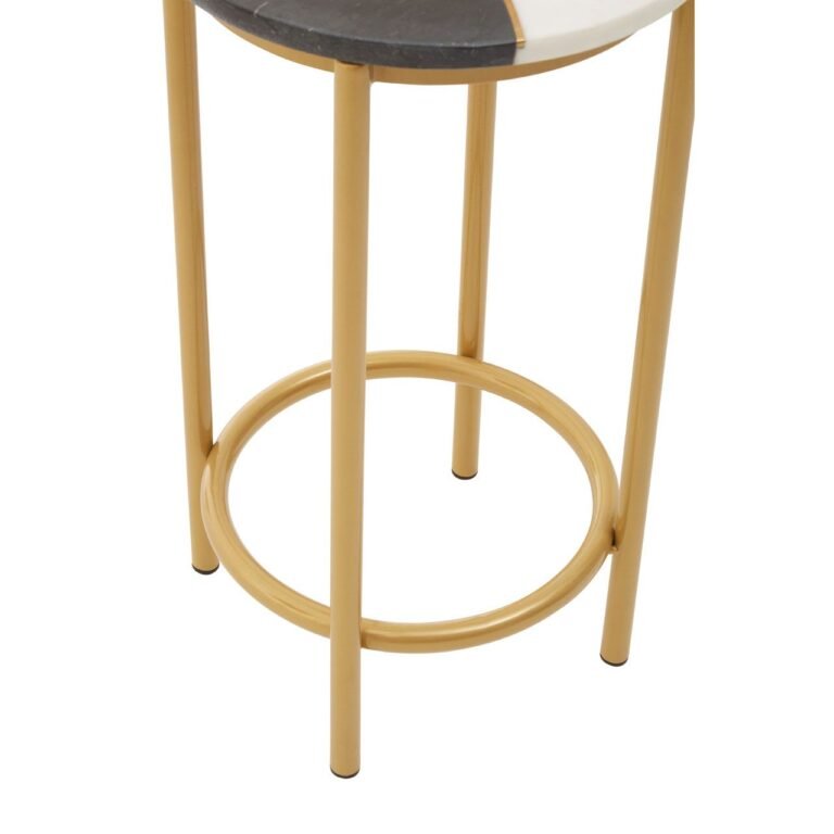 This Lissiez Two Tone Side Table has a two-tier round frame supported by four straight legs in a warm metallic finish. The two tonal marble top in sublime veining adds a hint of tactility to its contemporary accent.