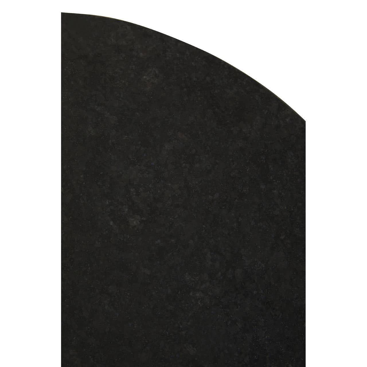 Lorel Side Table With Sledge Base: This side table creates a modern geometric form with its sleek and minimal frame accented in a gleaming gold finish. The angular legs combine at the bottom to form a sledge base, topped with a black marble top in a rounded silhouette.