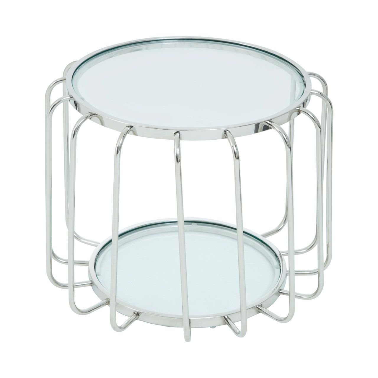 Lynwood Side Table With Glass Top: A modern and simplistic design, the Oria open cage side table is a statement piece. Crafted from vertical bars of stainless steel, which round at top and bottom to meet clear tempered glass, this table is ideal for placing lamps and decorative objects in a luxe styled interior.