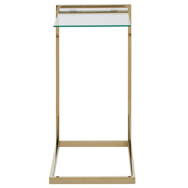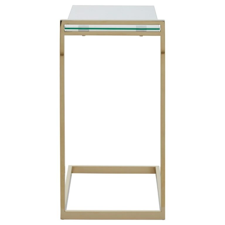 Lynwood Warm Metallic Finish End Table: Polish off a living space or readining nook with the Lynwood end table. A clear, tempered glass top rests within a well-constructed gold finish base. Slide under the end of a sofa for integrated tabletop feature or style alone with a lamp or flowers.