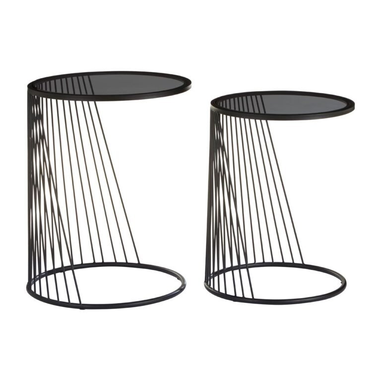 Each of these Mossley Set Of 2 Side Tables has a round grey glass top that is neatly set into a metallic frame. It is complemented by a round base that is connected to the top via the sleek black finish wires. The open design bases of these sleek and stylish nesting tables allow then to be nested together when not in use.