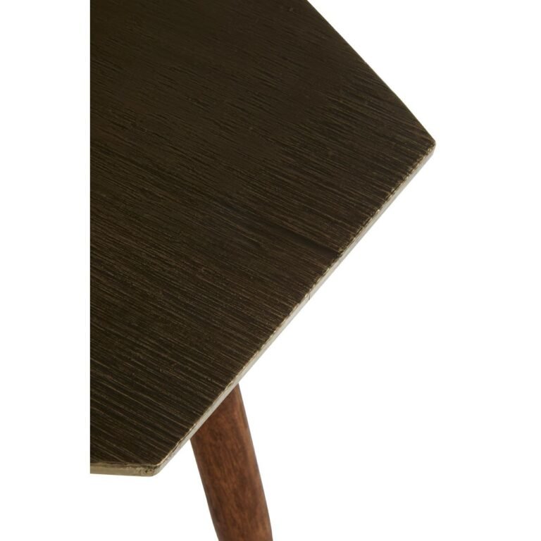 Ohom Hexagonal Side Table: This sleek and simplistic geometric side table is a design and luxury led item from the Ohom vibe. With three Sheesham wood legs they are strong and durable which hold the metal top with a brushed finish. The legs are rich in colour and strong and supportive with rubber tips to stop any scrapes or scratches on the floor. Geometric travel design allows for a stylish look in any home.