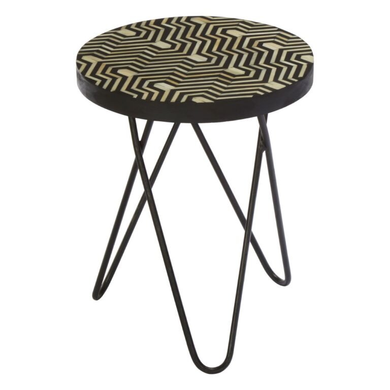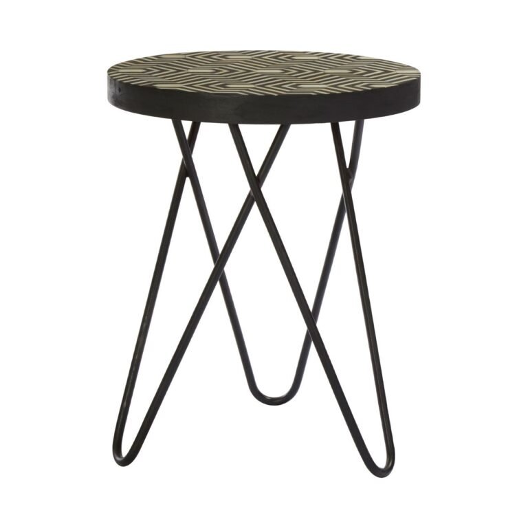 Ohom Side Table: The style led traveler is the inspiration for the Ohom side table. The on-trend zig-zag design on the top is made with bone inlay in a monochromatic colour. This is all supported by a criss-cross design of black metal legs. The style is sleek and not only functional but will accentuate any interior.
