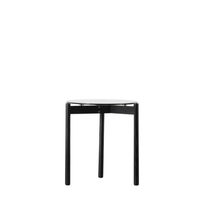 Lovely black side table offering a stunning contemporary style. It features a beautifully designed solid oak base with a black finish combined with a tempered smoked glass top. A matching coffee table is available, and both are also offered in a natural oak finish with a clear glass top.