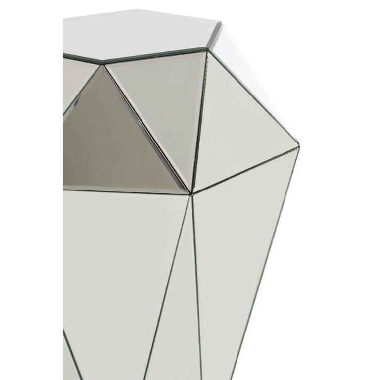 Regents Townhouse Silver Side Table: Encapsulating the luxury and glamour of a jewel, the Regents Townhouse side table features a faceted design. The distinctive side table is created from mirrored glass with a sleek silver finish that reflects light and enhances its sense of opulence. Style with boutique hotel inspired accessories and furnishings for a coordinated look.