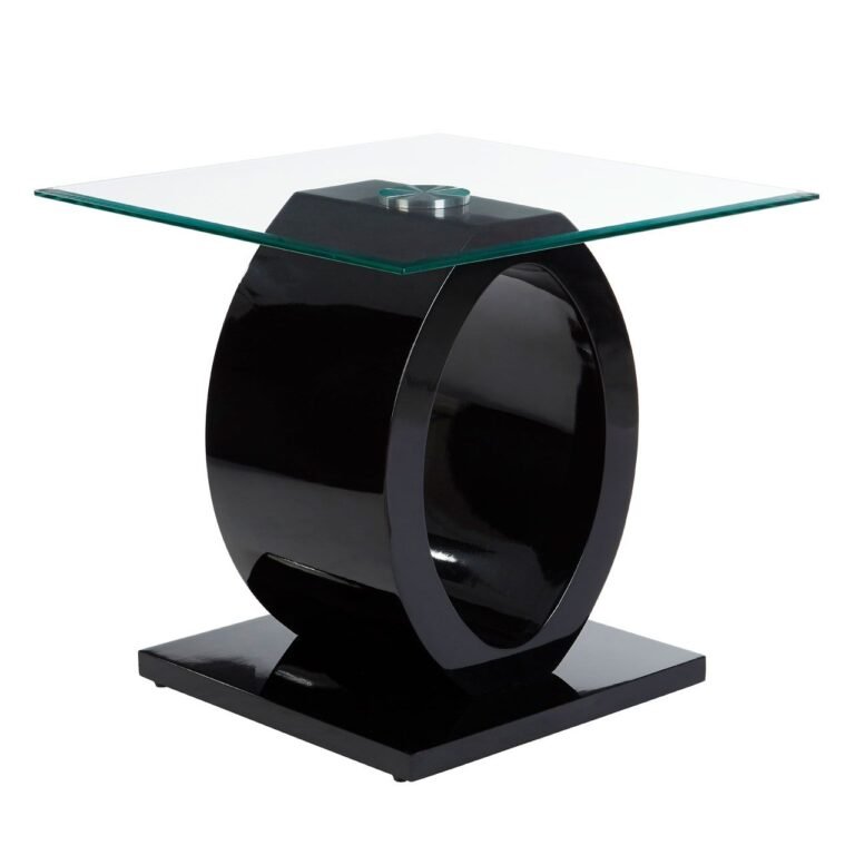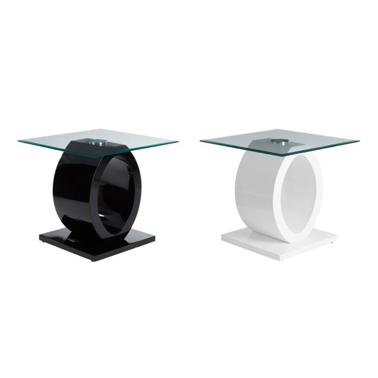 Riltz O Shaped Side Table With Black Base: You could be forgiven for thinking the Riltz side table is a work of art with its chic, contemporary design, but be rest assured, it will make a functional and fashionable addition in your living space. The sleek, clear tempered glass surface is smooth and suitable for displaying plants, lamps, flowers, photos and other ornaments, giving your home a personal touch. The striking ‘O’ shaped base is made from durable MDF and features a black hi gloss finish that accentuates the curved design. A square bottom below the curved base ensures the table is durable and sturdy. A fantastic feature in your home, the elegant Riltz side table will impose a modern style in any setting.