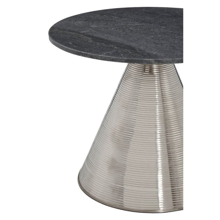 At the height of interior luxury, the Sunning Table With Grey Marble Top is a strong mix of luxe style and contemporary design. The smooth sleek grey top is held up by its strong textured. Style with cool metallic interior accessories for a coordinated look.