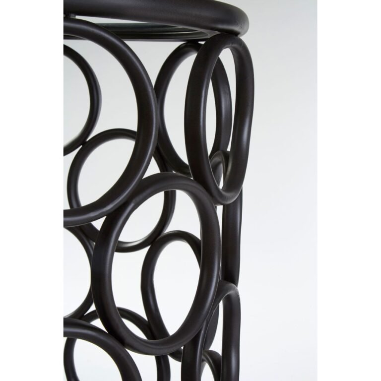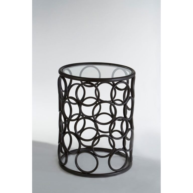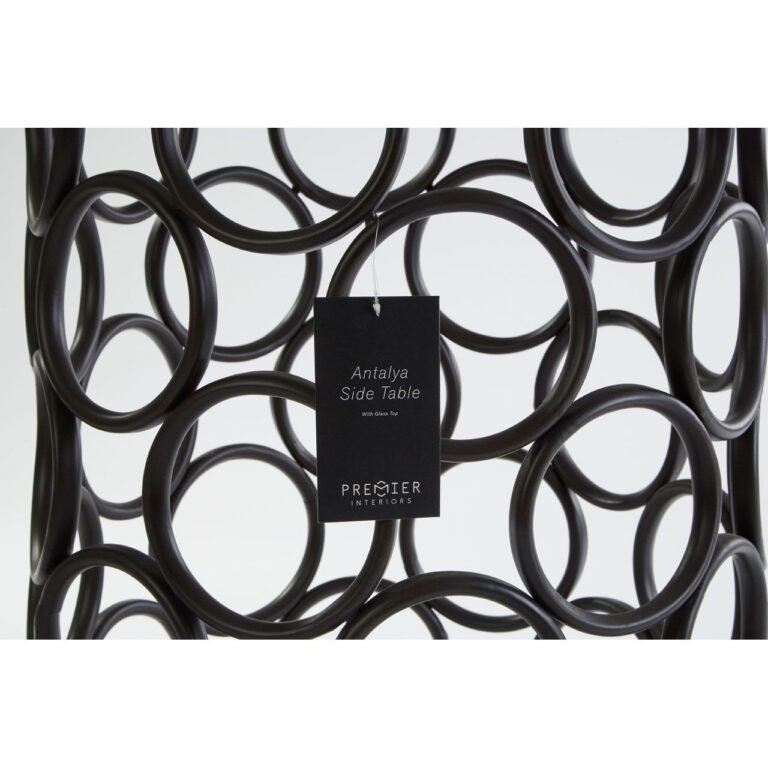 Talya Round Side Table: A striking feature in your living space, the Talya round side table will provide a practical surface space for you, and a fashionable look for your room. Made from robust metal, the round table frame is durable and sturdy, featuring an eye-catching circle design that will complement most decors. A tempered glass surface is strong enough for placing drinks, snacks, plants, lamps, photos, flowers and other decorative features on. Helping to keep your living room organised and tidy, the stylish Talya side table creates a wonderful feature in your home. *This item has a distressed look, imperfections in the wood and metal are part of the design*
