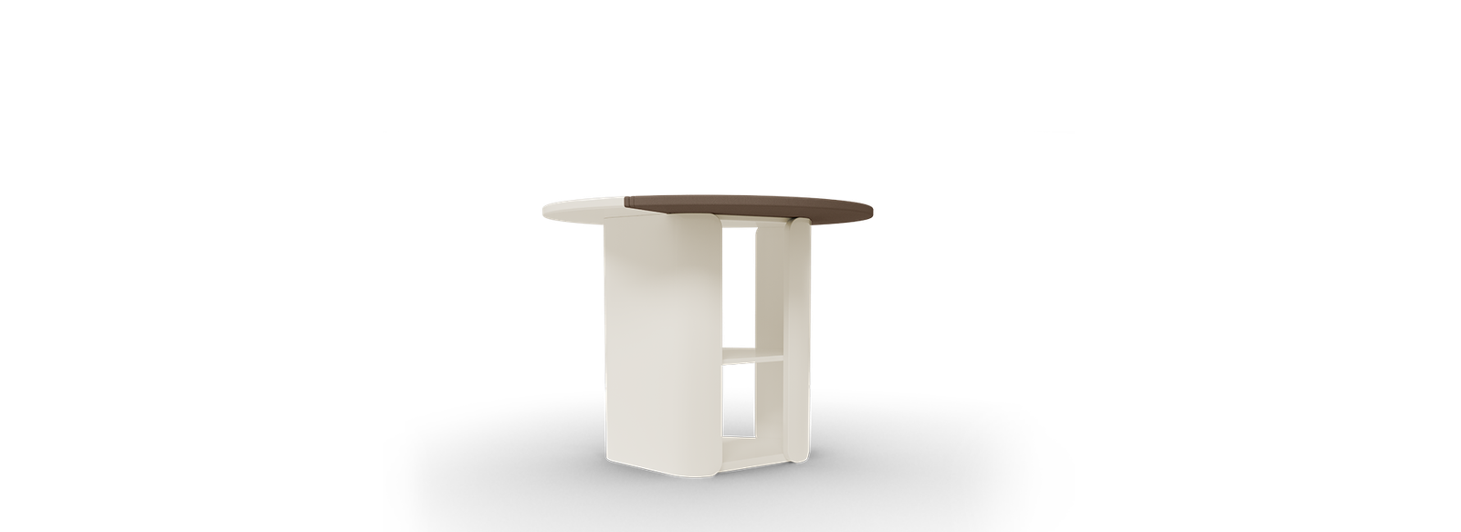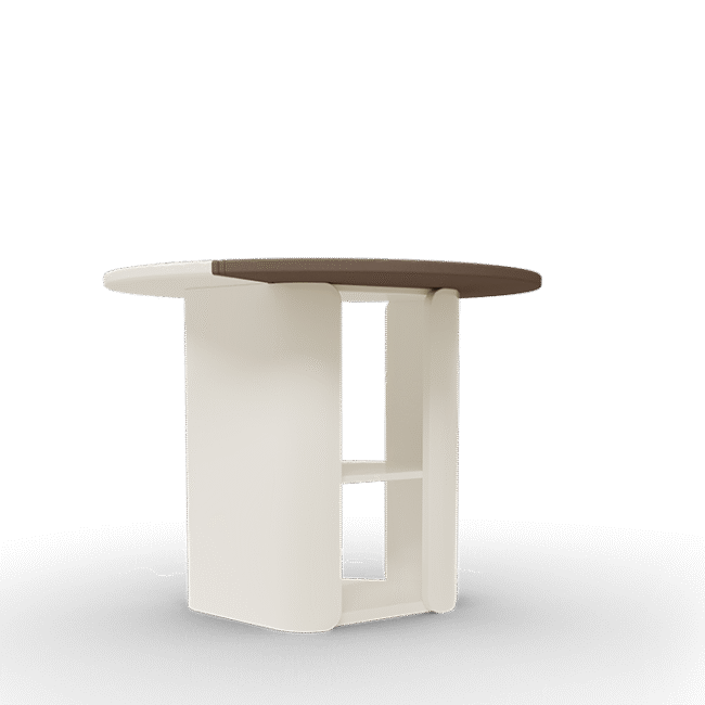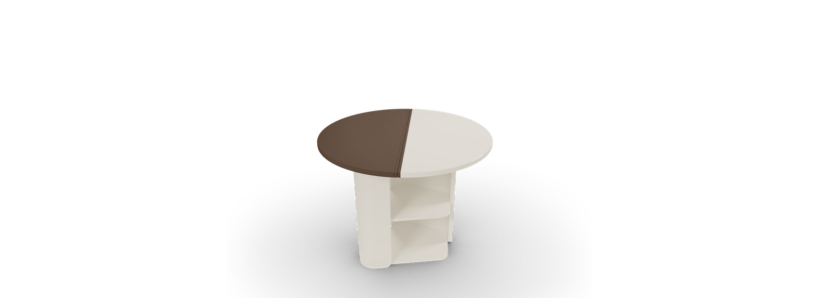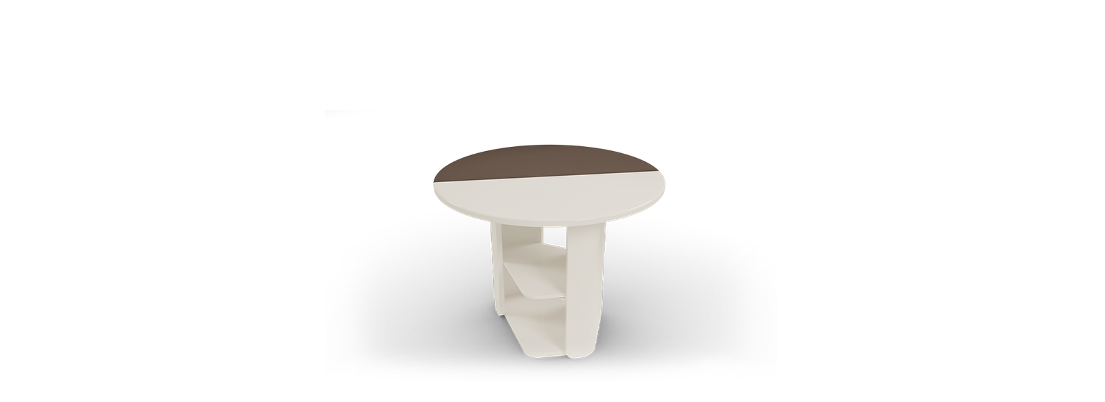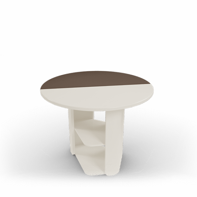 Tamper Side Table: In the same way, a simple tamper is one of the most important utensils for a barista to create the perfect cup of coffee, this side table which resembles the shapes of this tool, is also an indispensable item in any room. With a very direct approach to its composition, using various finishes and even materials, with a cream lacquered top doubled in synthetic leather for a prime modern design. Excelling not only in its aesthetic but also in utility with two functional shelves for storage.