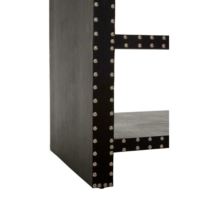 Adding prestige to your room, the stylish Tote 2 Shelves Side Table, with 2 shelves, will provide a functional and fashionable piece of furniture in your room. Made from durable MDF, the table is covered in chic black leather effect that is robust and easy to clean, making it ideal for everyday use in a busy home. Accentuated stud detail decorates the front of the table, with each one given a silver finish adding to its splendid look. The sturdy shelves are suitable for storing books, magazines and paperwork as well as displaying plants, lamps, photos, flowers and other decorative ornaments. Helping to keep your bedroom or living space organised and tidy, our stylish and practical Tote 2 Shelves Side Table will make a striking statement in your room.