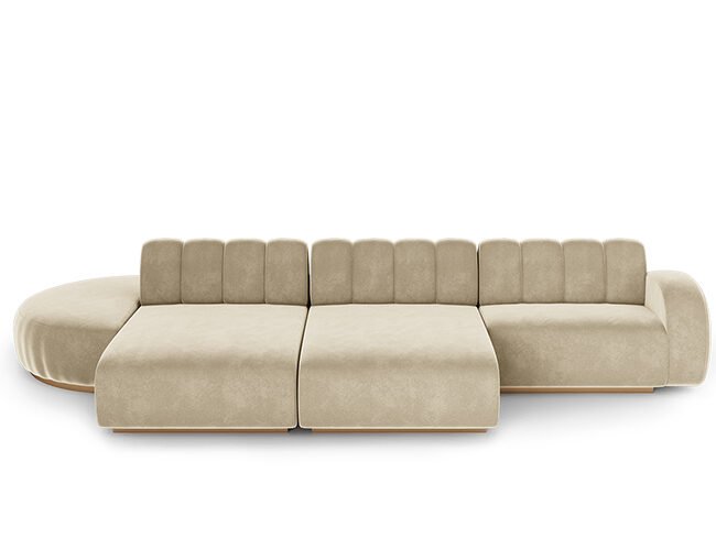 Cassia Modular Sofa is the perfect addition to your modern living room. With a hue of brown inspired in the Cassia cinnamon, this velvet sofa contains an upholstered back and seating, with symmetric shapes for a chic look. A rearrangeable sofa, that’s both chic and cozy.