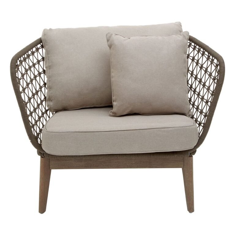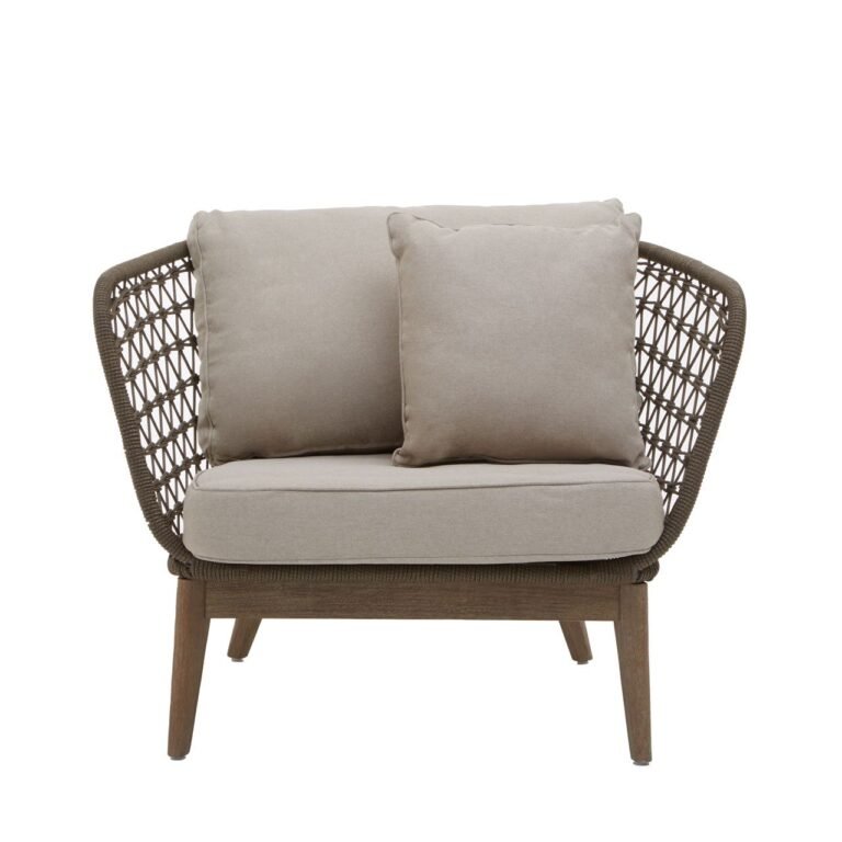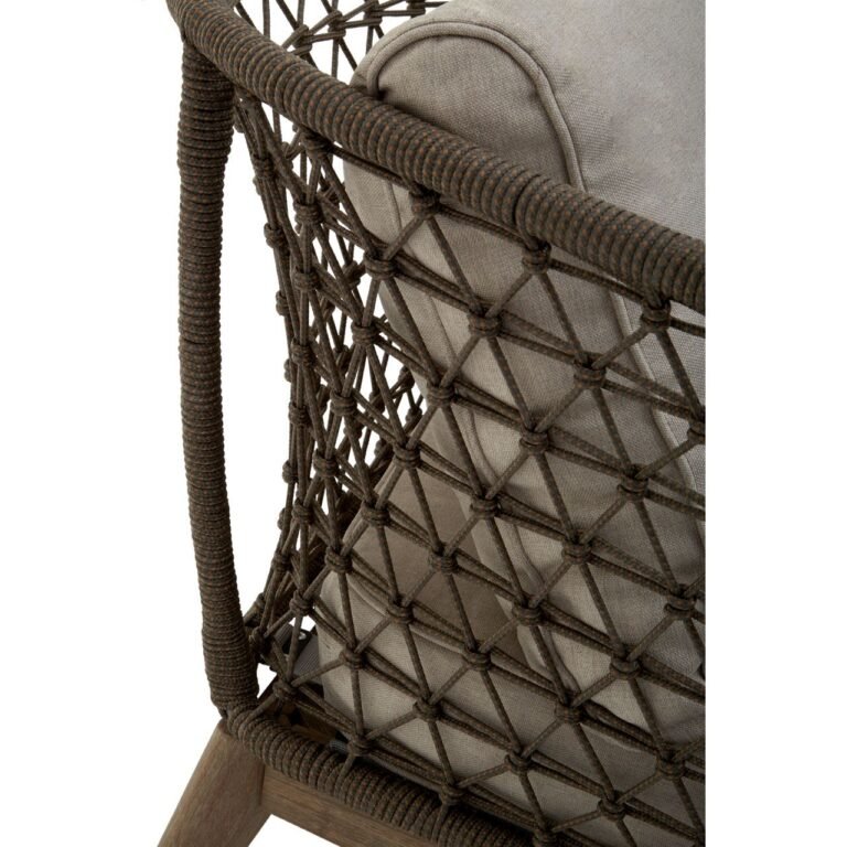 Charnwood Grey Chair: The chair is skilfully hand-woven and exhibits an angular profile with flared armrests and an open-frame textured back. The foam-padded grey seat provides optimum comfort, while tapered legs lend stability and mid-century aesthetics to the living area.