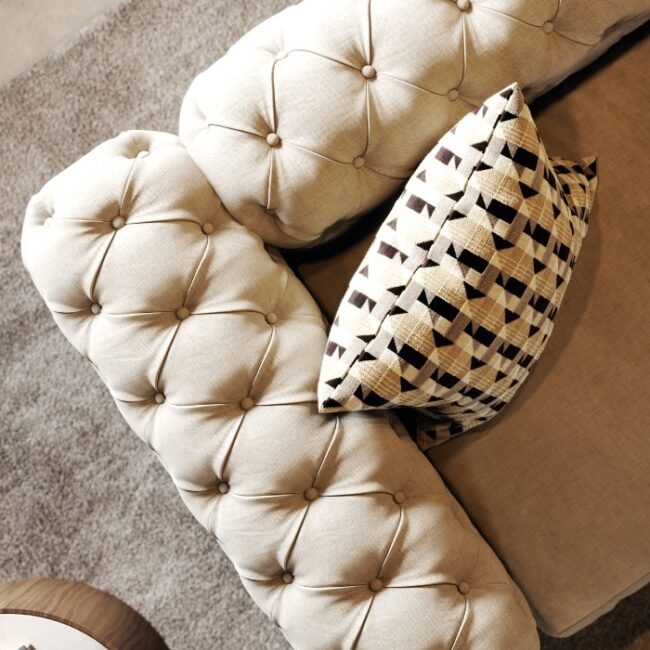 Jean Sofa small designed with the deep buttoning technique, Jean Sofa small is an impressive piece for desirable living rooms. This upholstered sofa is the perfect addition for cosy retreats and welcoming open spaces. Jean makes the most out of a living room that doubles as a dining room. It is a versatile seating piece with wooden details and metallic base.
