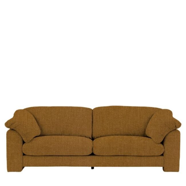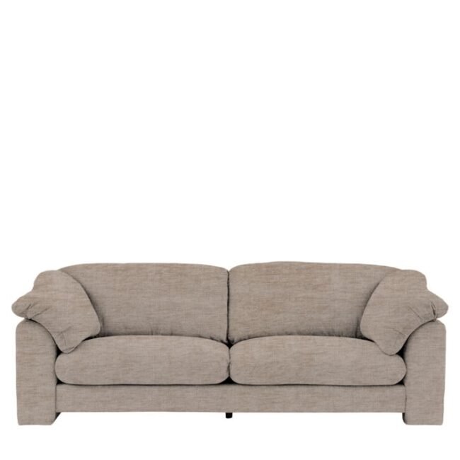 Kuded Sofa 4 Seater: Relaxed style meets modern comfort. This inviting 4 seater sofa combines plush foam and polyester-fibre fillings for a soft yet supportive sit, while wrap-over arm cushions introduce an extra layer of indulgence. Upholstered legs create a seamless, contemporary profile that enhances its effortless, laid-back aesthetic. The perfect balance of style and comfort for everyday living.