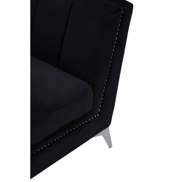 Lenser Black Velvet Chair: This foam-padded chair features channel detail which creates a chic statement. Exhibiting a tapered profile, this chair is upholstered skilfully in sumptuous black velvet. The chrome finish oblique metal legs will contribute to the mid-century modern style.