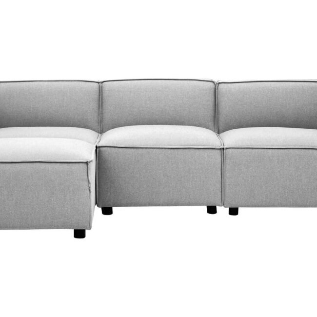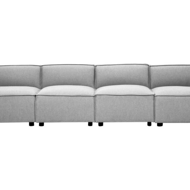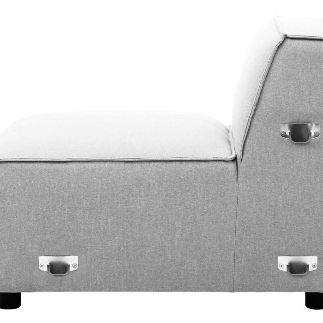 This sofa has hardwood frame with high durability, and its base filled with soft foam to offer comfortable sitting experience in luxe accent. The minimalistic design of this armless grey fabric sofa has a charming appeal that combines with any interior design.