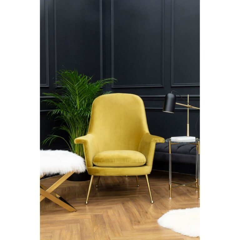 The seat is covered with natural wool, coloured white to complement the reflective gold finish of the crossed legs. It lends a touch of luxe style to the living room.