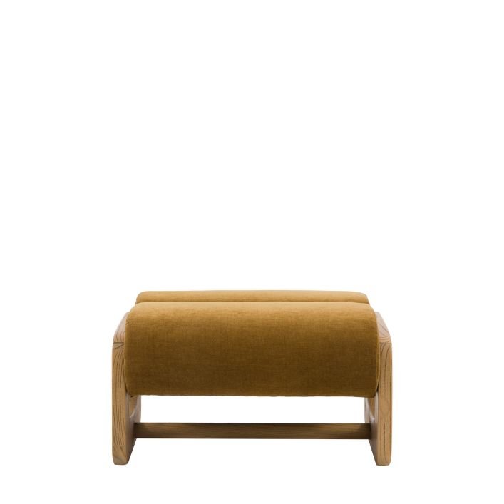Arco Footstool: Distinctive and stand out, this footstool’s bold form and expressive craftsmanship’s brings confident style to a living space. Refined by its sculptural wooden frame, the generous upholstered cushion offers relaxed comfort while maintaining statement style.