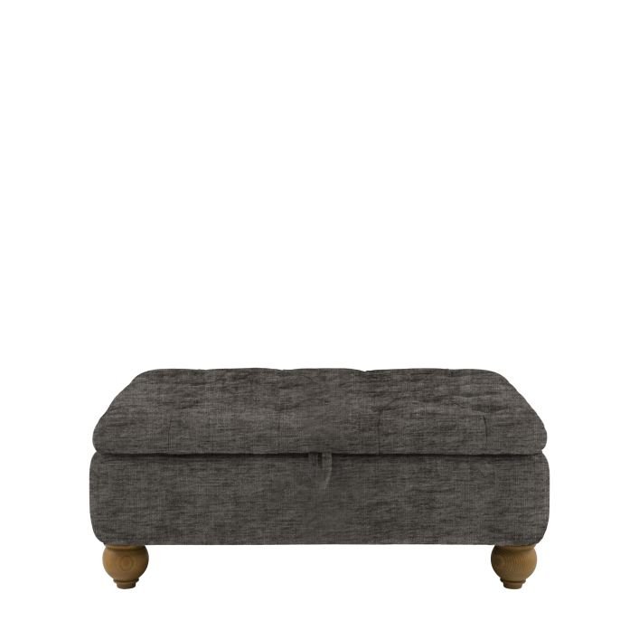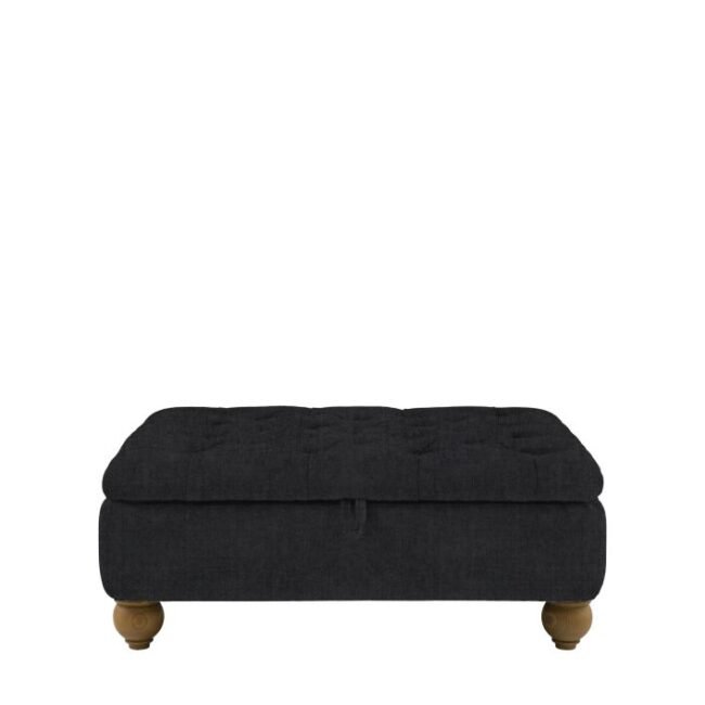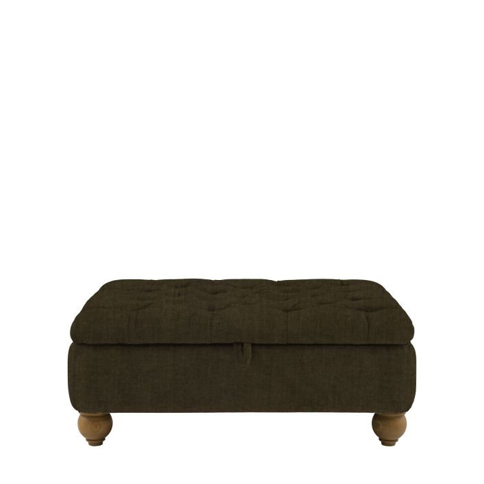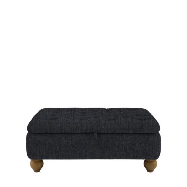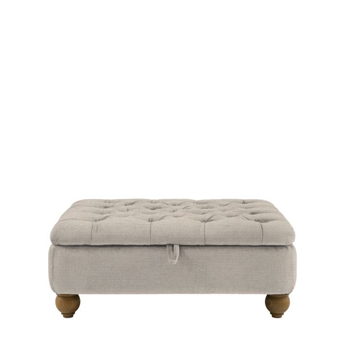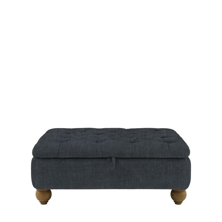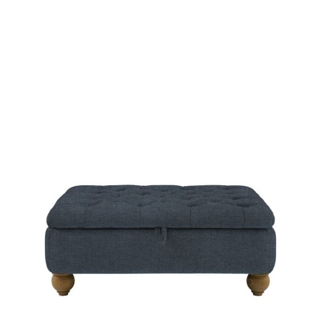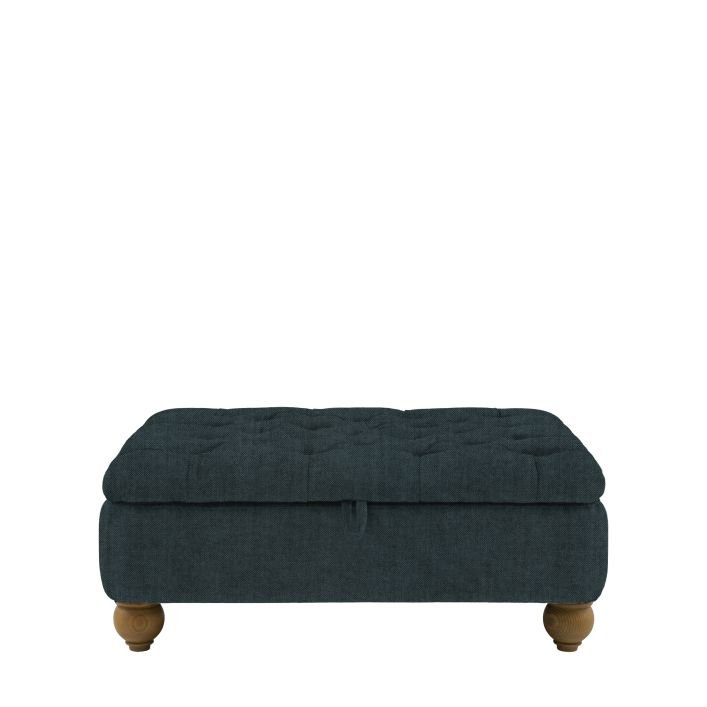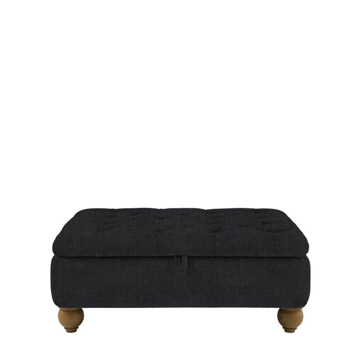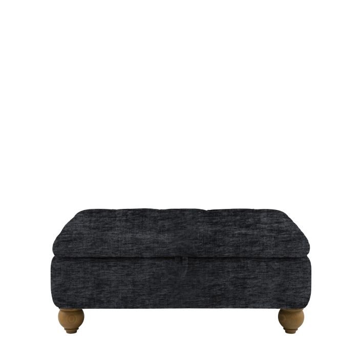 Chester Footstool: Inspired by an iconic design, this footstool brings modern practicality to a timeless style classic. With a deep buttoned top and solid ash turned legs, the footstool is the perfect spot to put your feet up and relax. Adding a modern twist, the top lifts to reveal a much needed storage space, just right for extra blankets and more. Perfect for bringing character and charm to any interior.