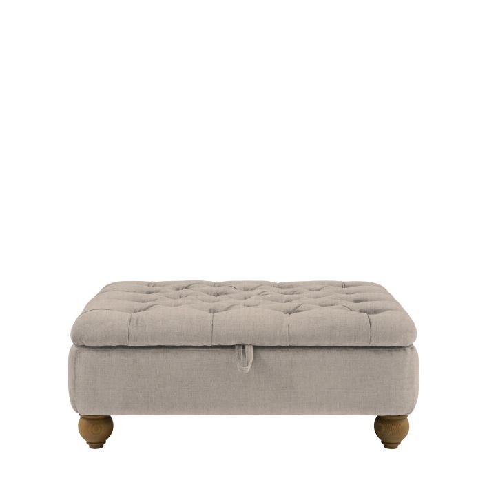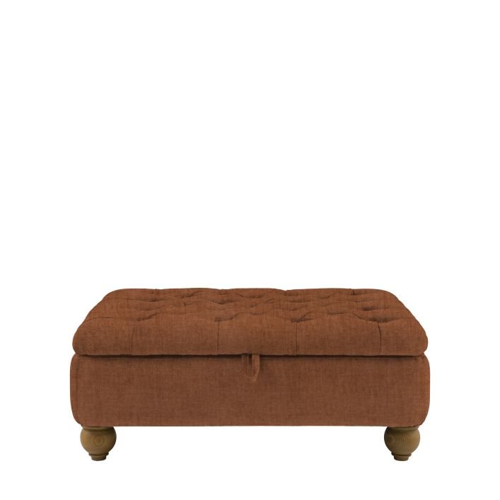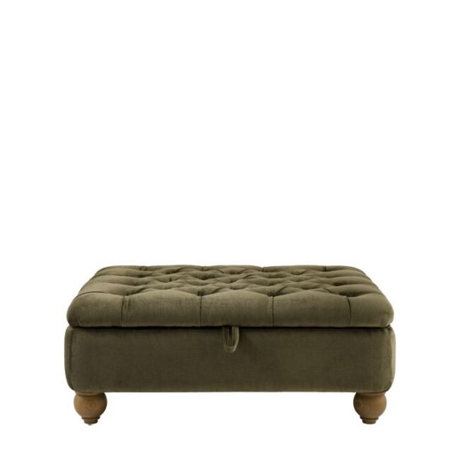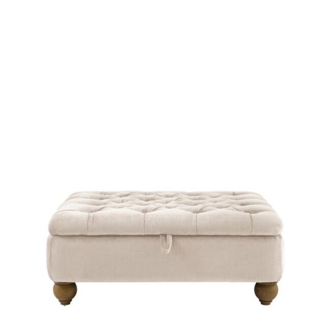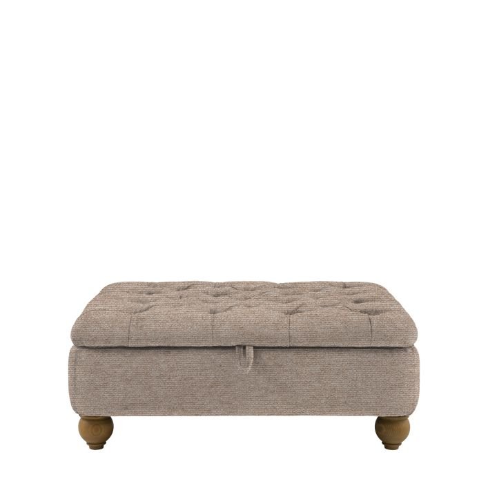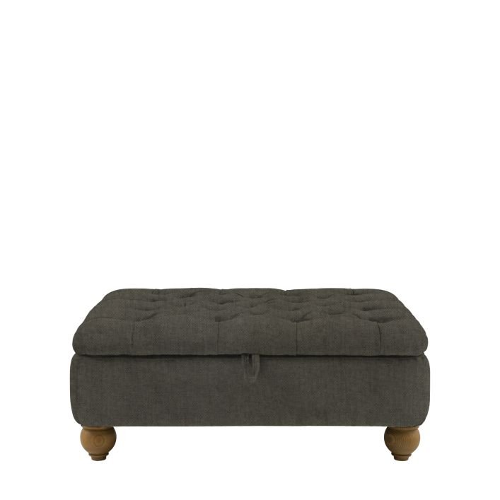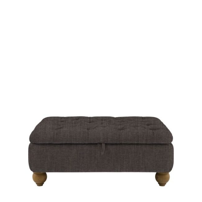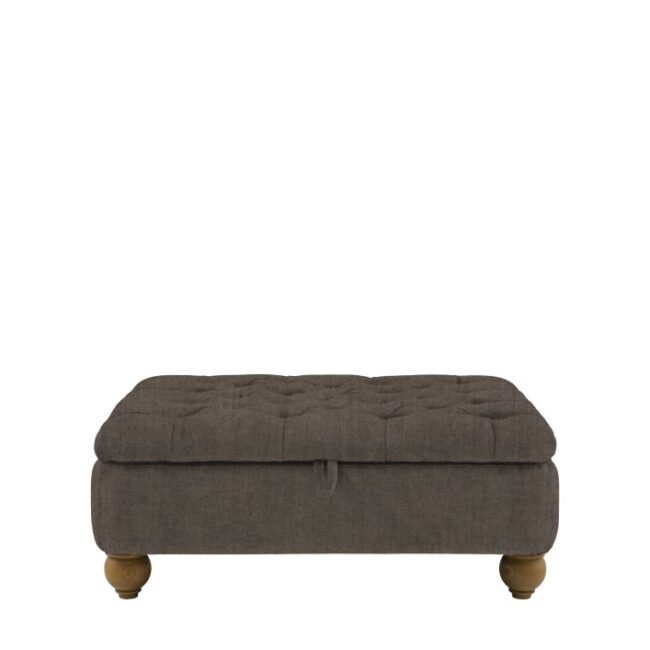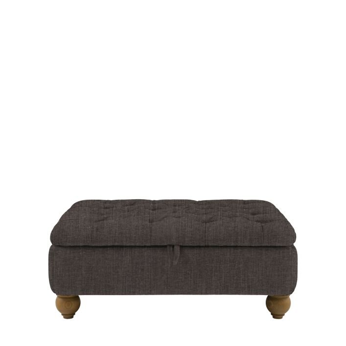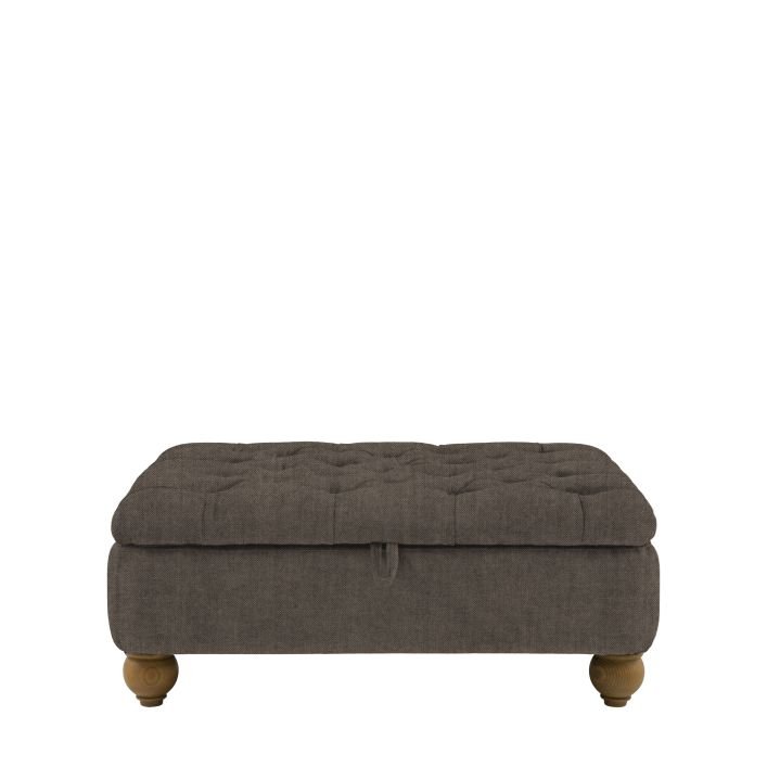 Chester Footstool: Inspired by an iconic design, this footstool brings modern practicality to a timeless style classic. With a deep buttoned top and solid ash turned legs, the footstool is the perfect spot to put your feet up and relax. Adding a modern twist, the top lifts to reveal a much needed storage space, just right for extra blankets and more. Perfect for bringing character and charm to any interior.