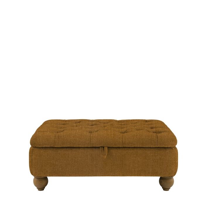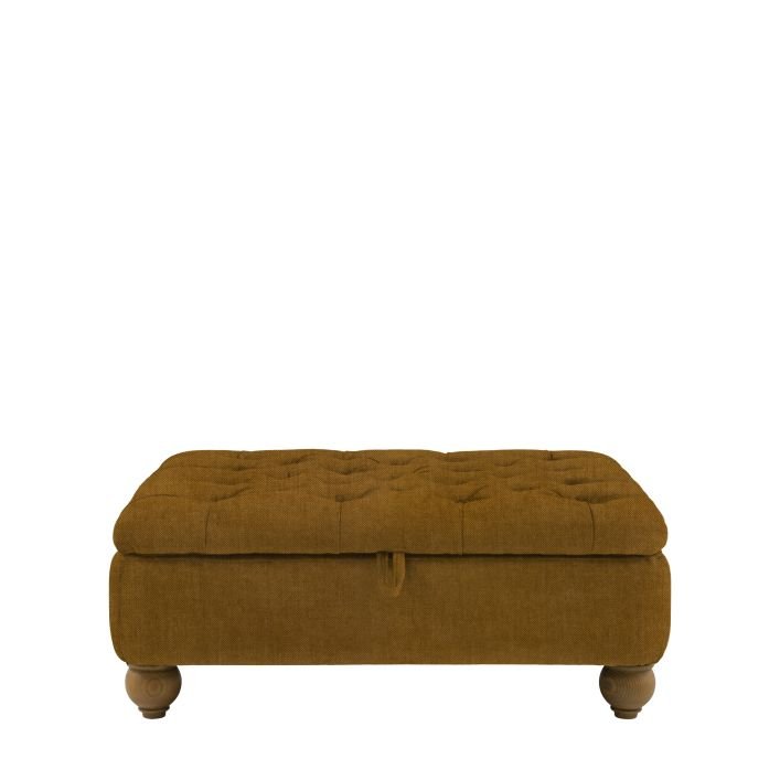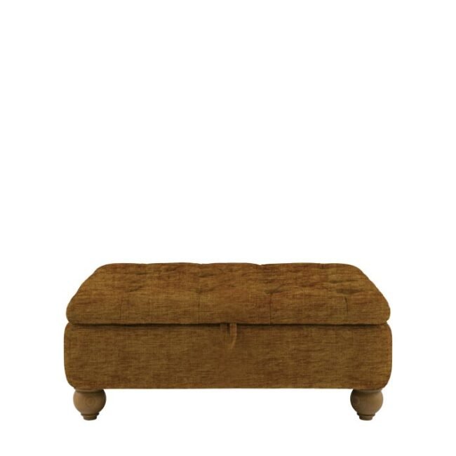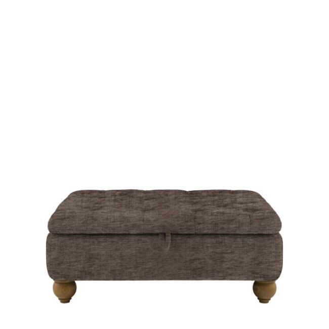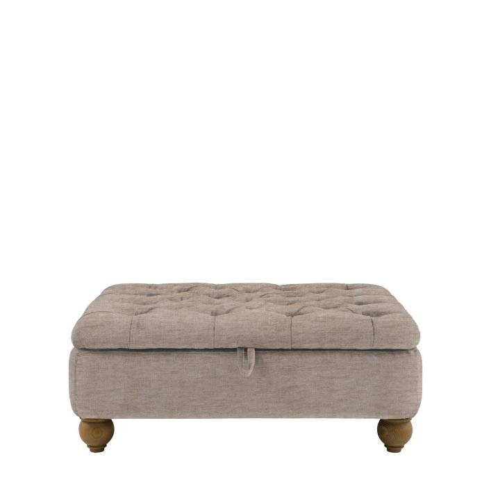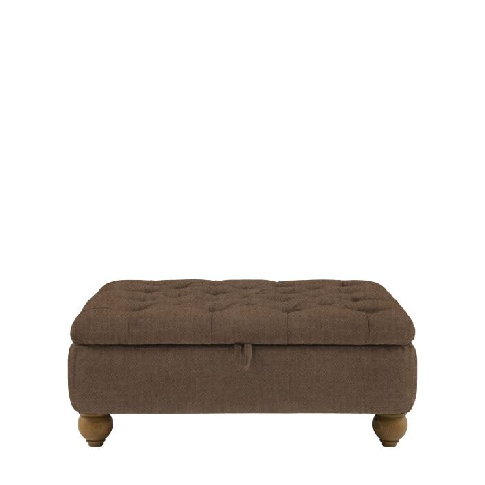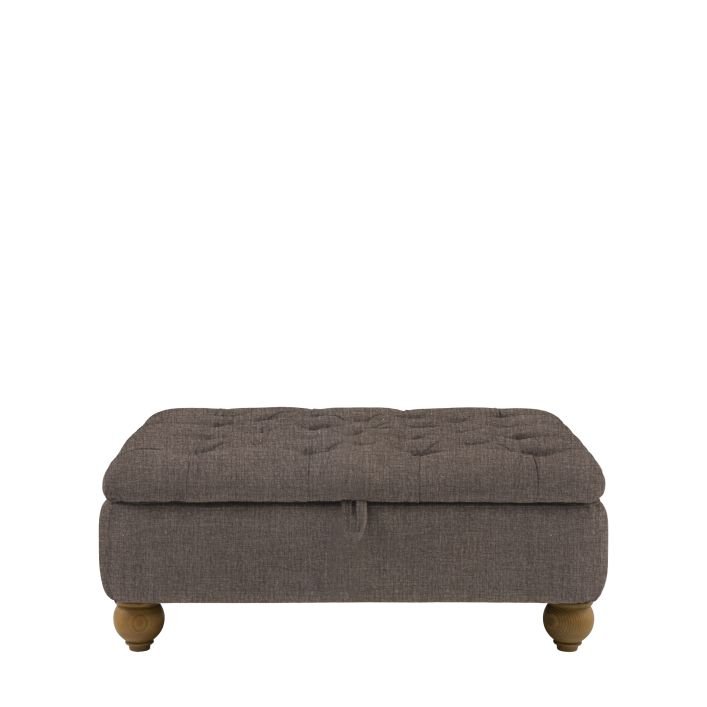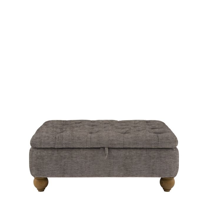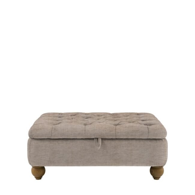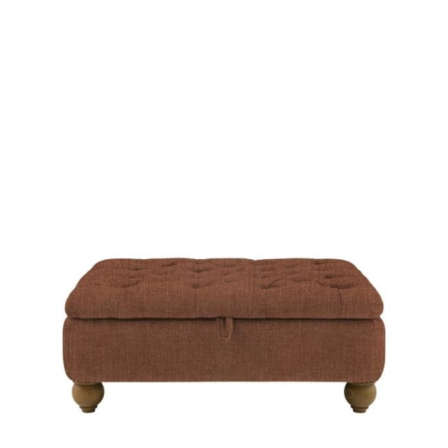 Chester Footstool: Inspired by an iconic design, this footstool brings modern practicality to a timeless style classic. With a deep buttoned top and solid ash turned legs, the footstool is the perfect spot to put your feet up and relax. Adding a modern twist, the top lifts to reveal a much needed storage space, just right for extra blankets and more. Perfect for bringing character and charm to any interior.