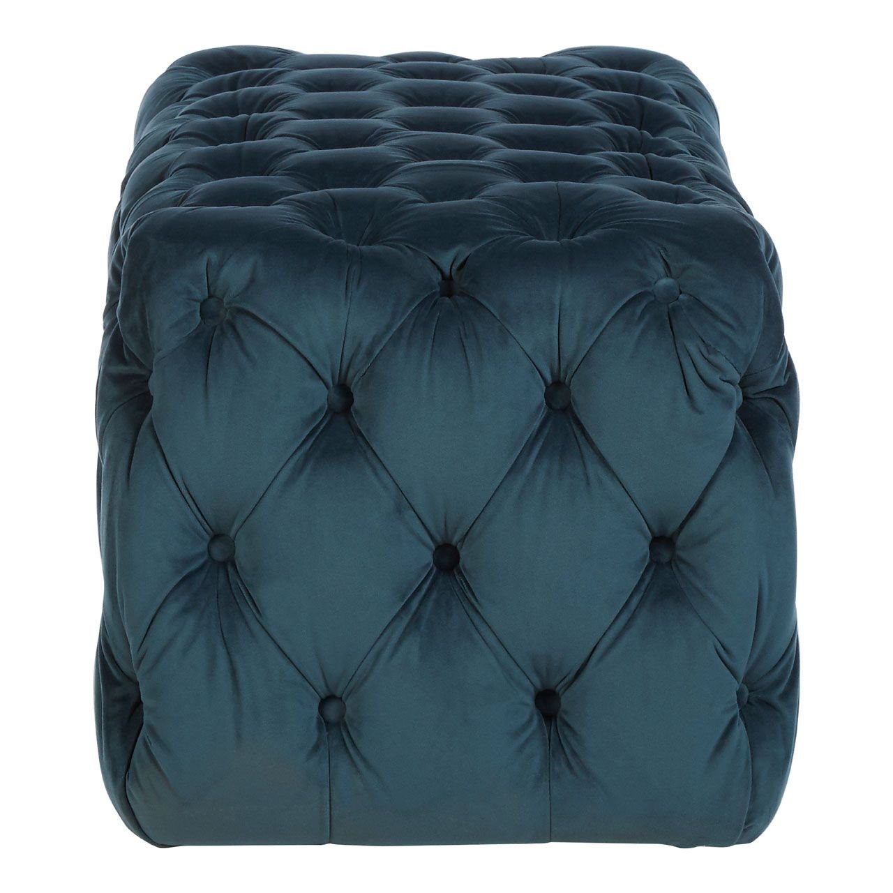 Inspired by traditional Chesterfield design, the Cotswold Midnight Footstool features classic button tuft detail that accentuates its subtly curved edges and adds depth to the top and sides. The stylish footstool is designed in a modern rectangular shape with no legs or feet. The elegant design and fabric of this footstool lend it to luxe interior settings.