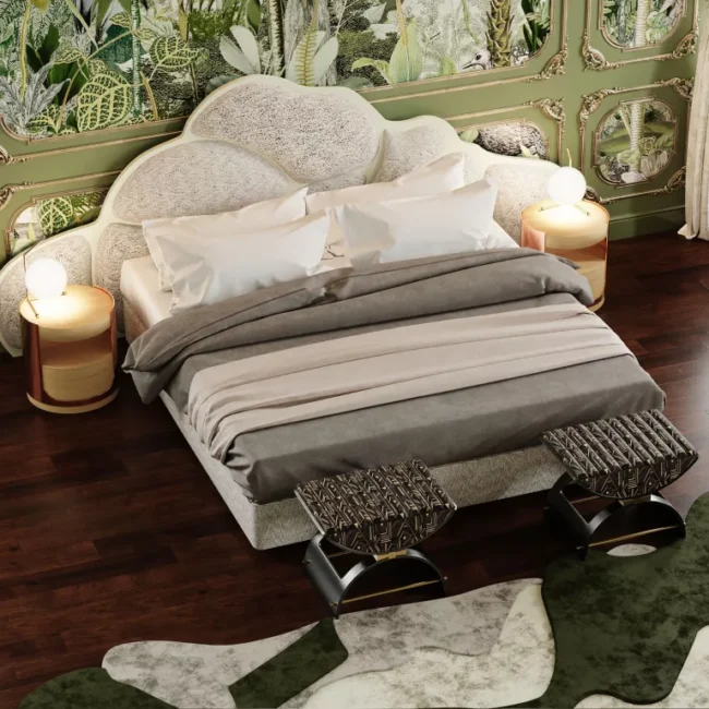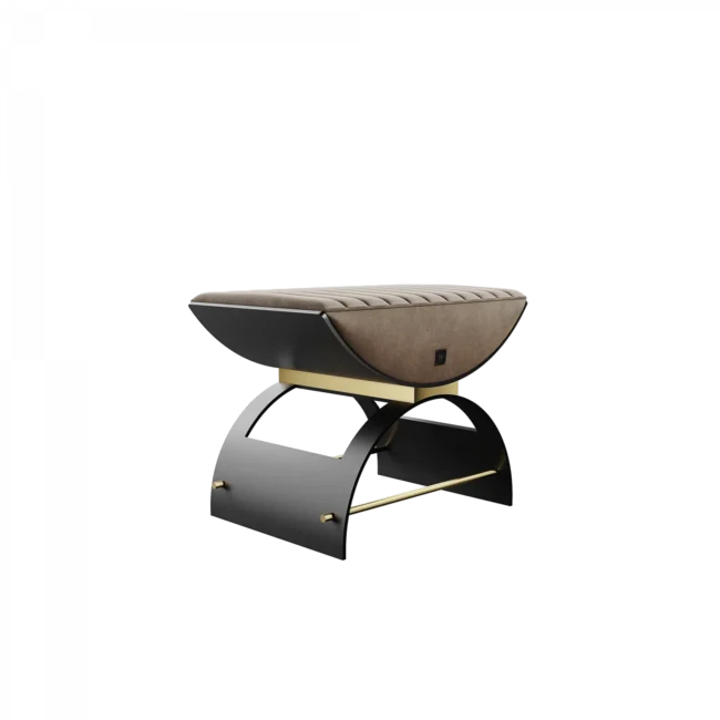 The Eros Stool combines modern design with vintage charm, featuring curved seating for both comfort and style. This contemporary stool, upholstered in luxurious velvet, is ideal for master bedrooms or as an elegant accent next to the sofa. Measuring 60 cm (23.6 in) in width, 40 cm (15.7 in) in depth, and 47 cm (18.5 in) in height, the Eros Stool boasts a black anodized iron structure with gold polished stainless steel details. Enhance your interior design project with this sophisticated and stylish stool, perfect for adding a touch of elegance and modern flair.