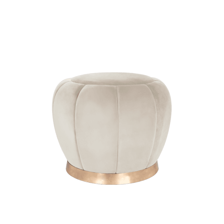 With cylindrical shape and a cushioned seat upholstered in velvet fabric.