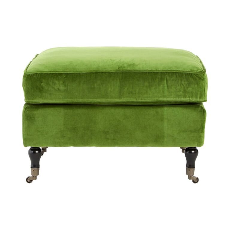 With its verdant green upholstery this Grekle Velvet Plush Footstool adds colour to contemporary living rooms.