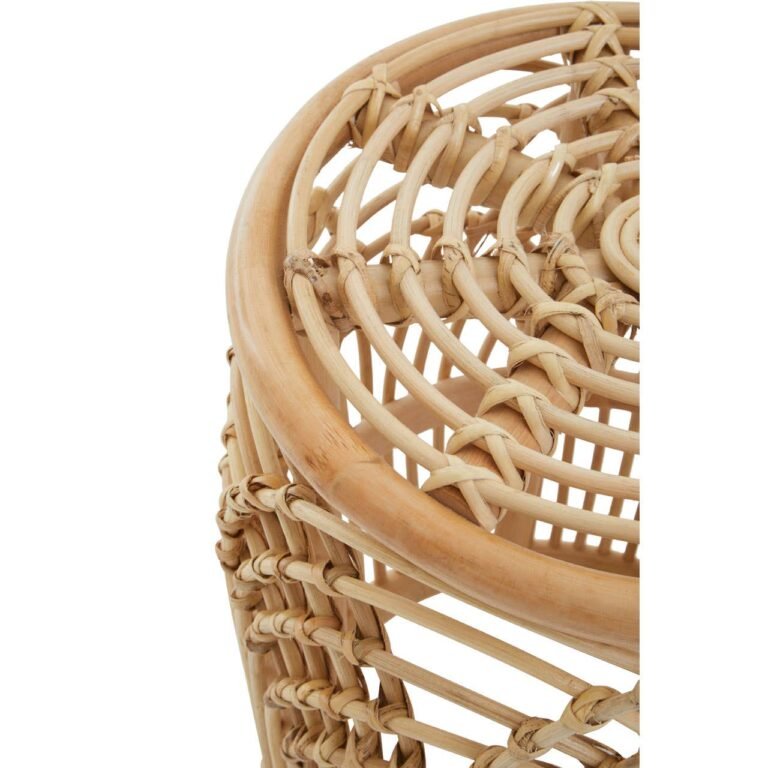 Crafted with simplicity from eco-friendly rattan, this stool elevates a modern organic style. The round top in tight weave complements the intricate arched pattern forming the open and airy base.