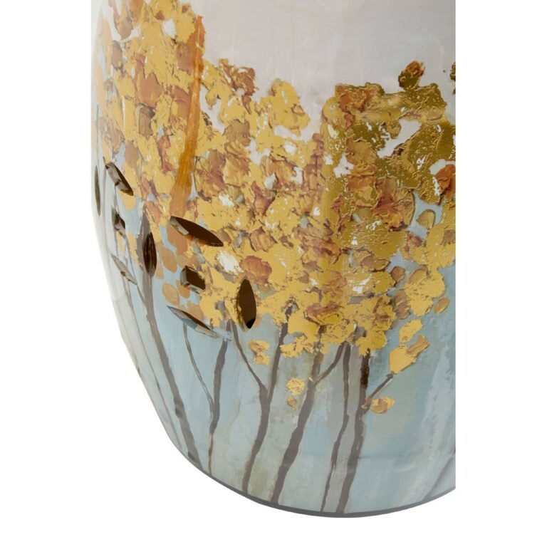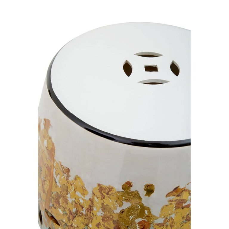 This stool is artfully handcrafted with ceramic creating a chic accent with the subtle glazed finish. The oriental style artwork on the surface of this drum-shaped stool lends a botanical charm to the area and goes well with traditional style interiors.