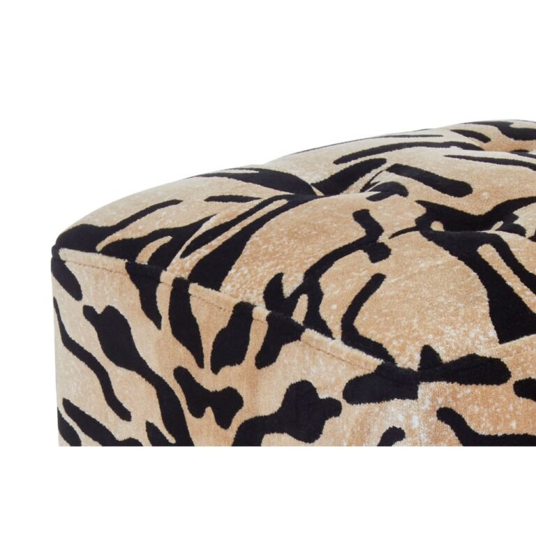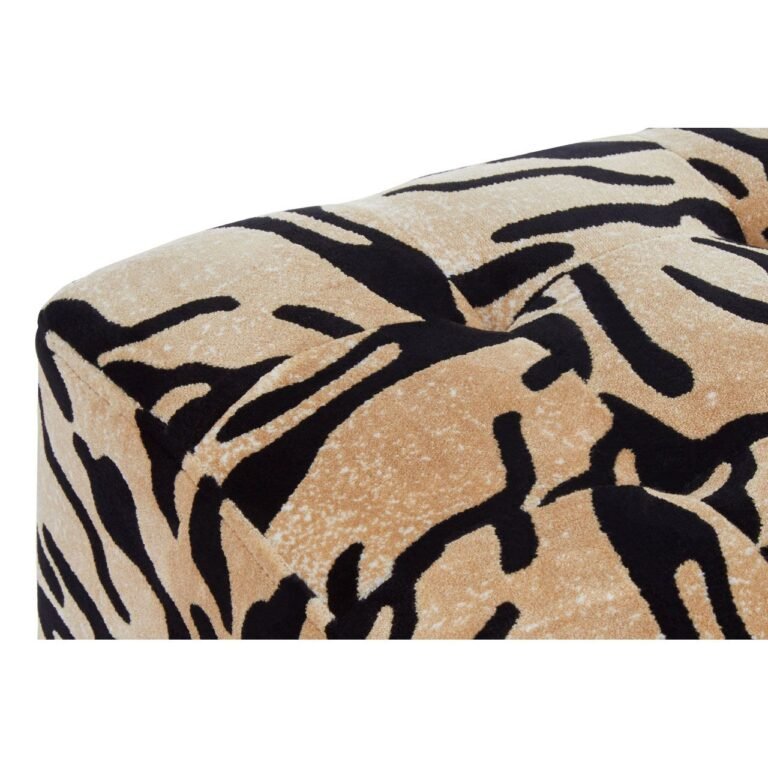 This Marston Tiger Print Stool features tiger print stripes in black and gold tones. The seat is gently tufted in button detail forming square sections across the padded seat. Piped trim along the lines of seat complements the discreet stitching on all four sides. A white flecked pattern on the warm surface completes the eye-catching safari aesthetic.
